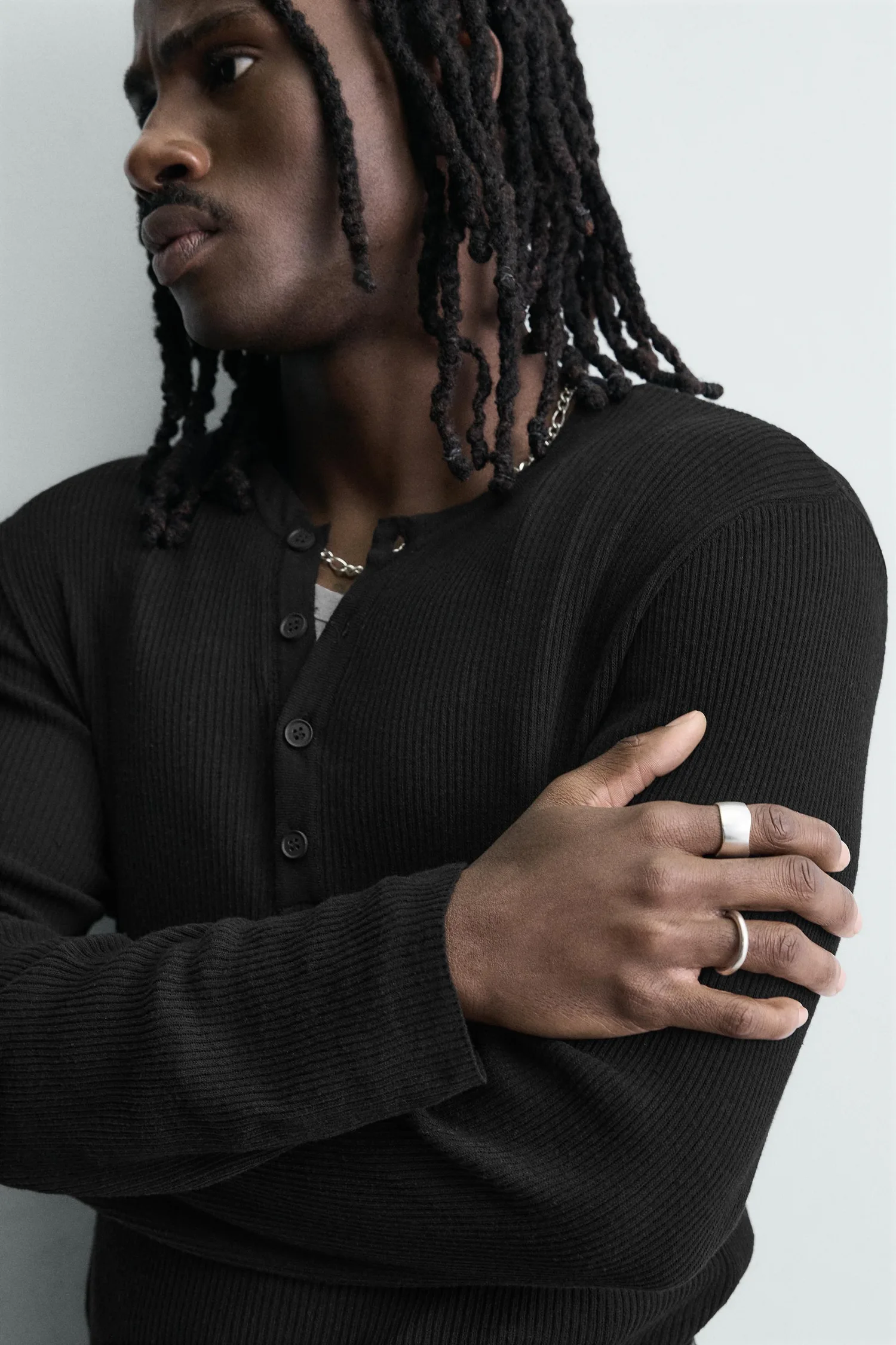 Комплект из двух металлических колец, сочетающих в себе различные формы. Покрыты серебром 925 пробы.