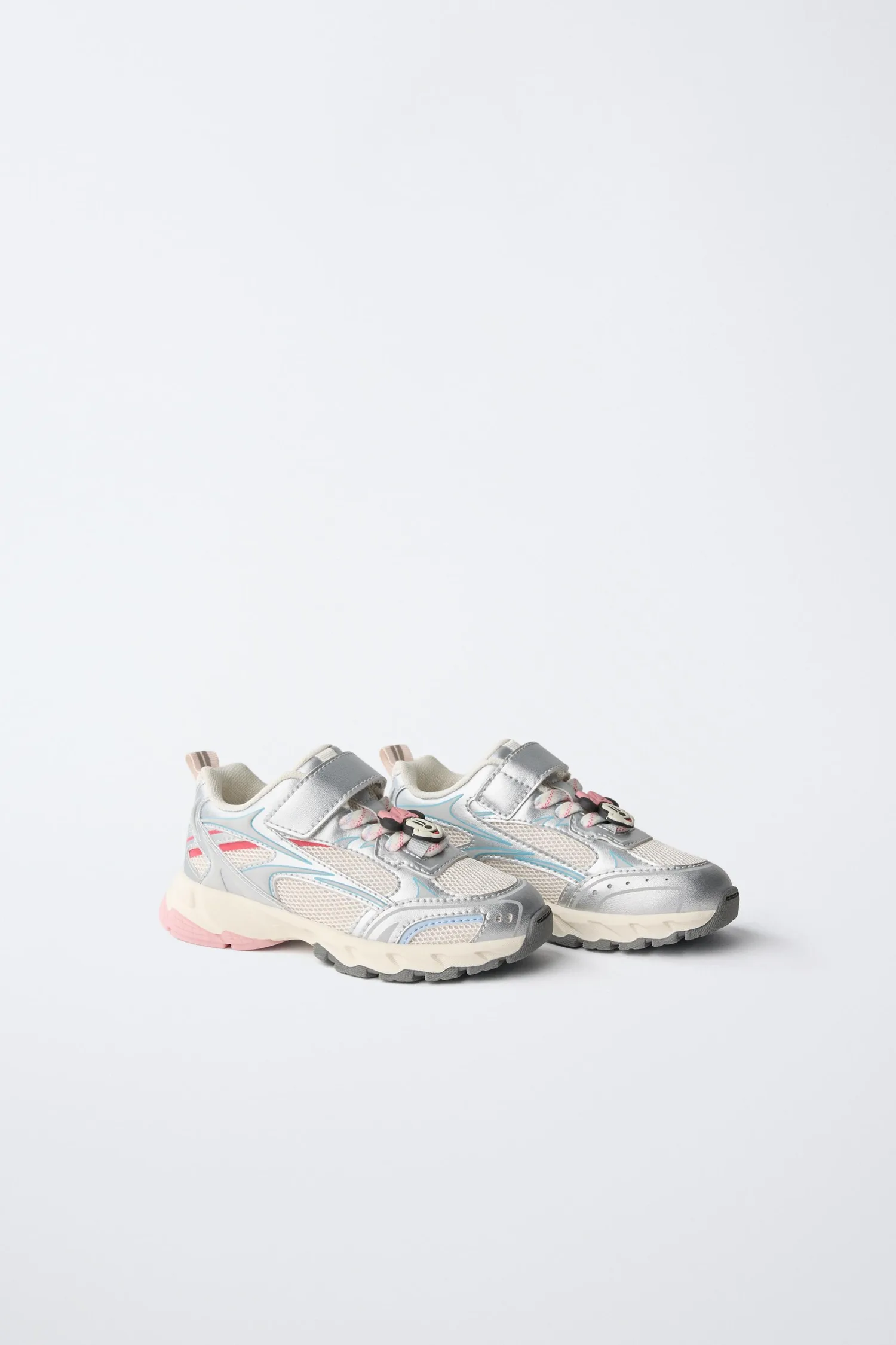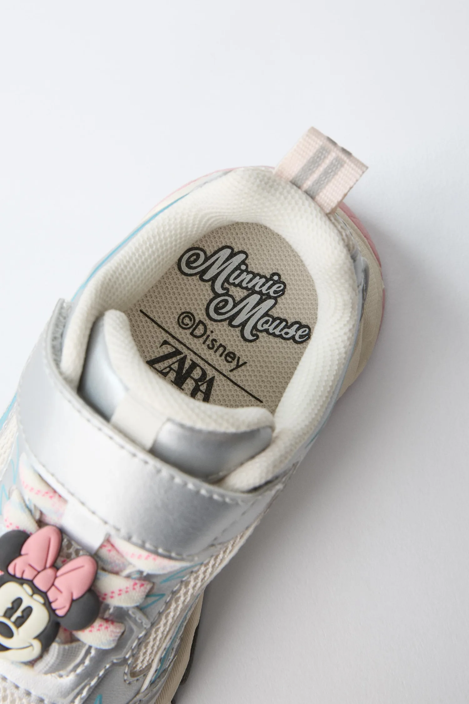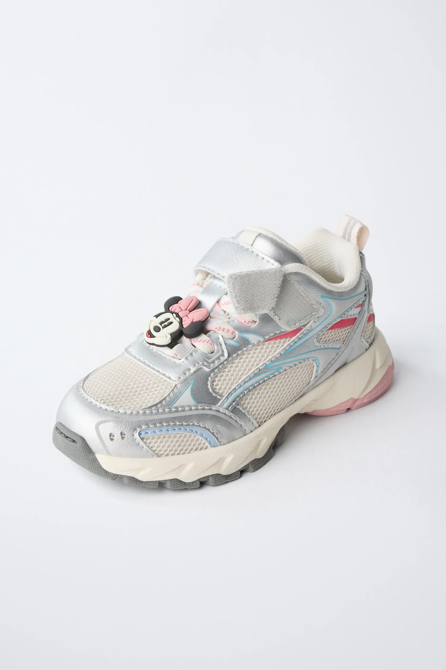 Кроссовки с сетчатыми вставками и подвеской MINNIE MOUSE © DISNEY. Регулируемая шнуровка и клейкая лента на подъеме. Петля сзади для удобства надевания. Внутренняя подошва OrthoLite. Резиновая подошва.