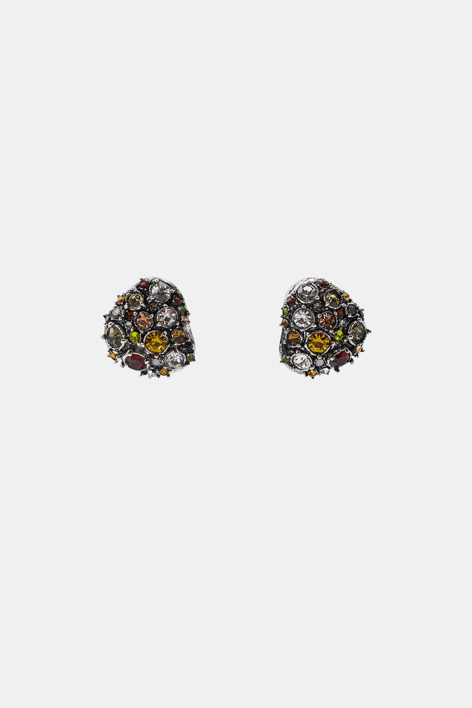 Металлические серьги-пуговицы с контрастными цветными аппликациями из драгоценных камней. Застежка-клипса в виде бабочки.