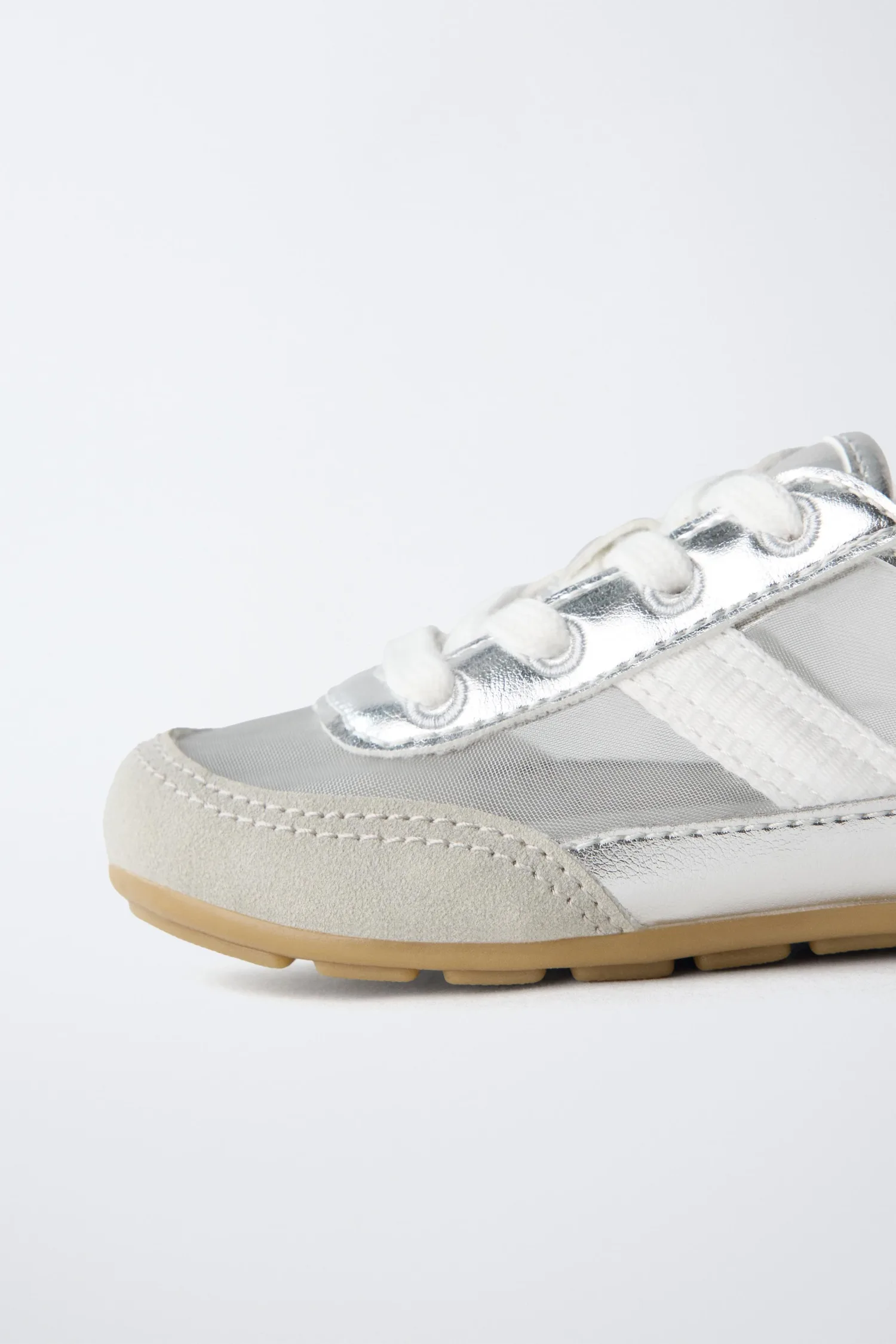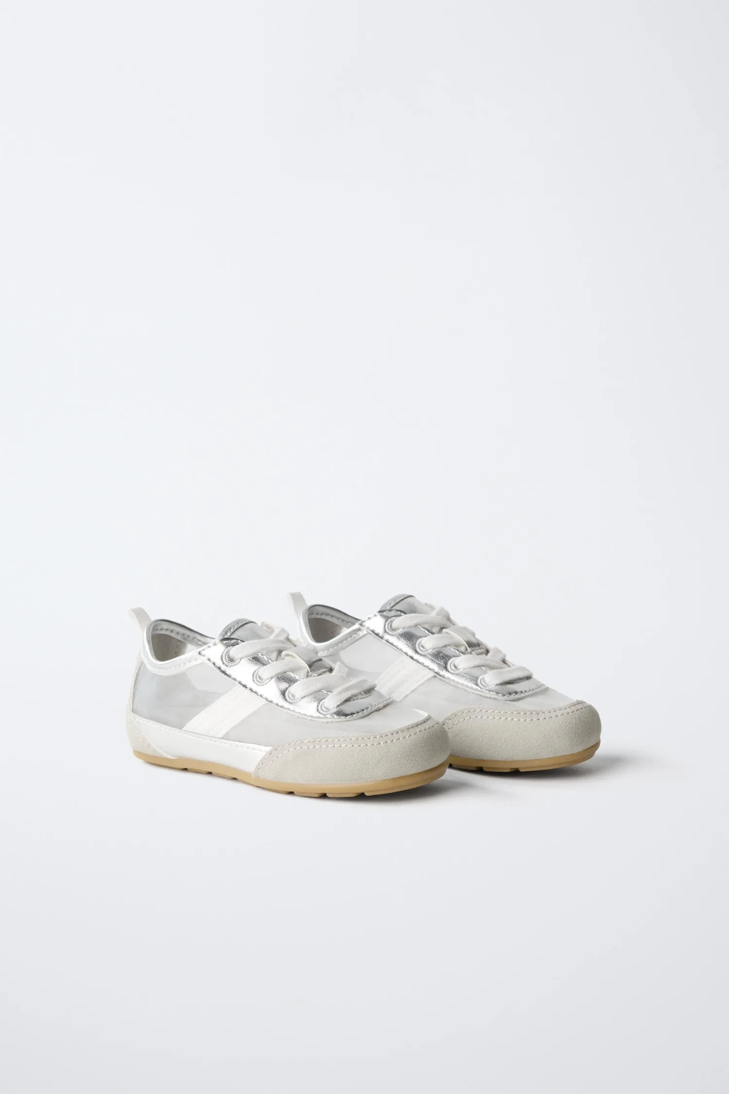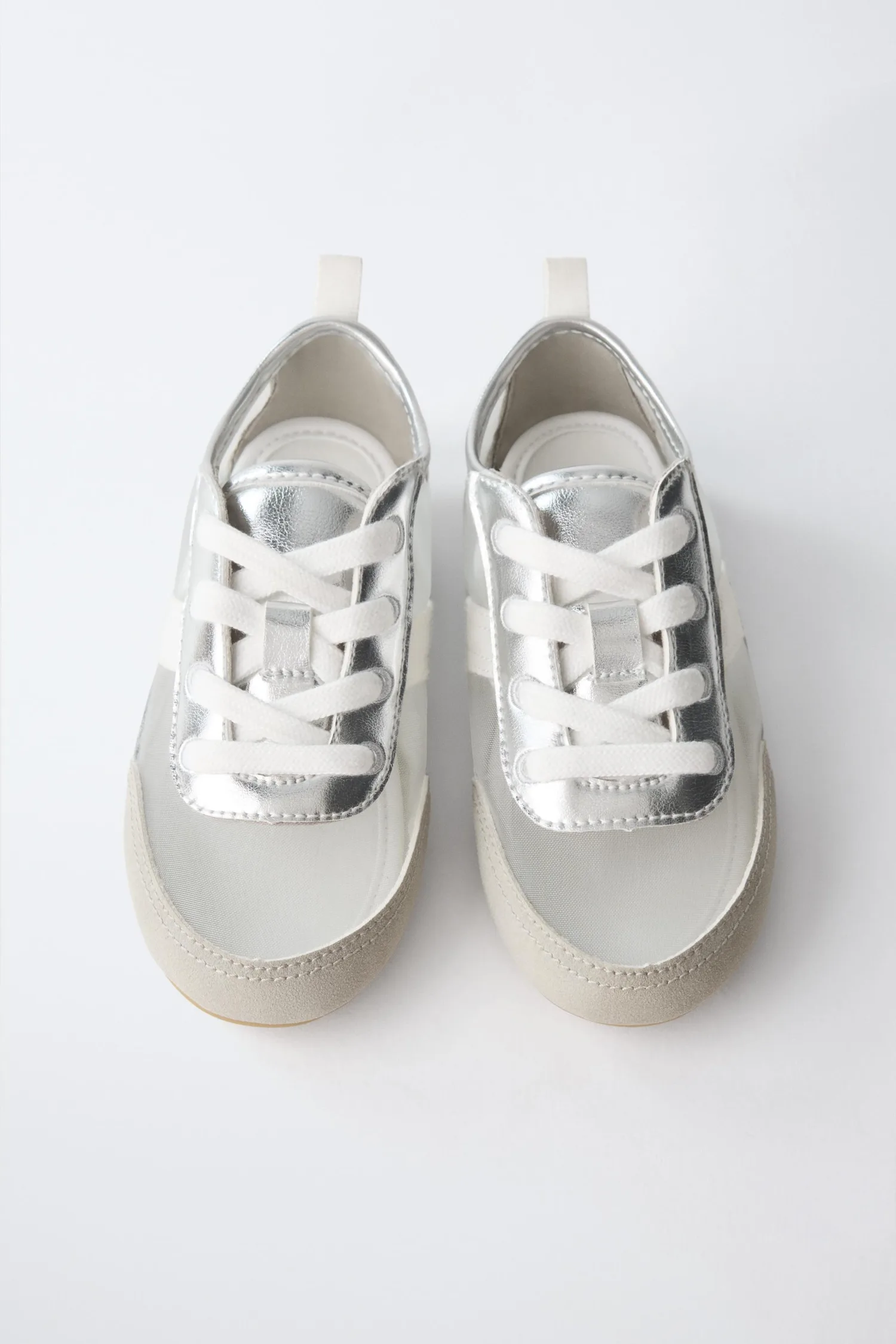 Кроссовки с металлическими и органзовыми деталями. Шнуровка. Гибкая стелька. Резиновая подошва.
