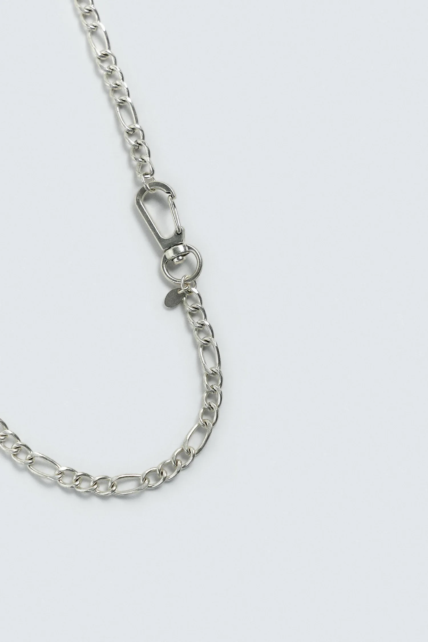 Цепочка с подвижными металлическими звеньями. Застежка-карабин.