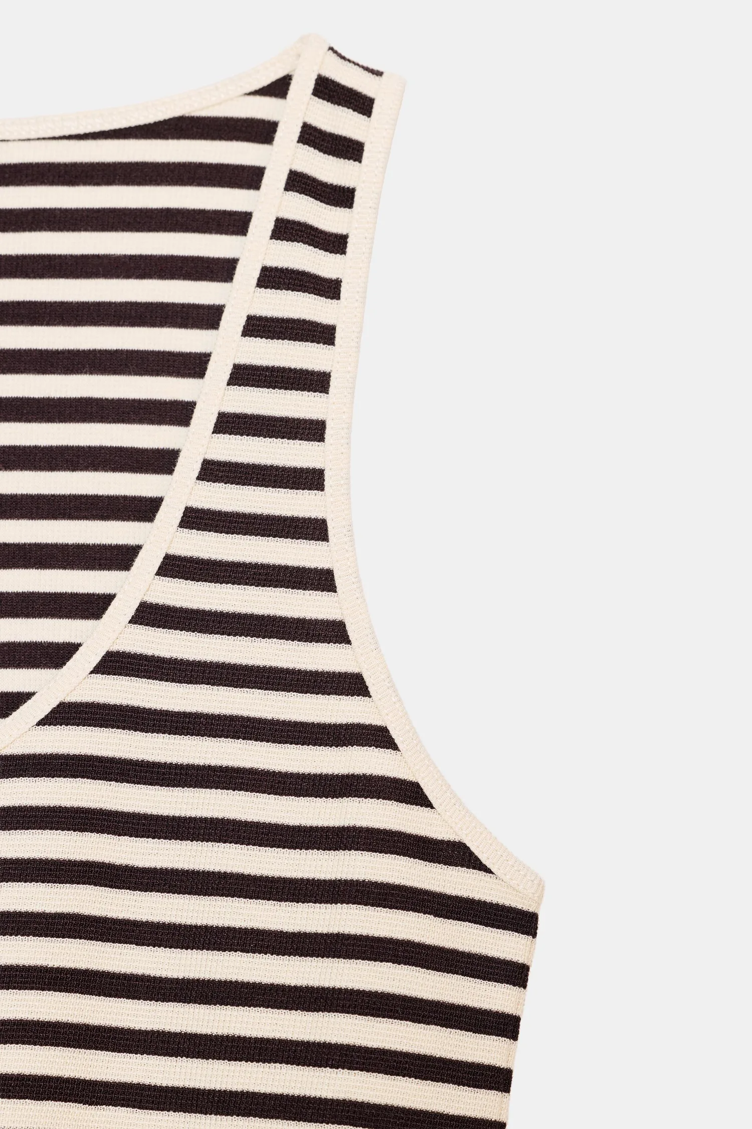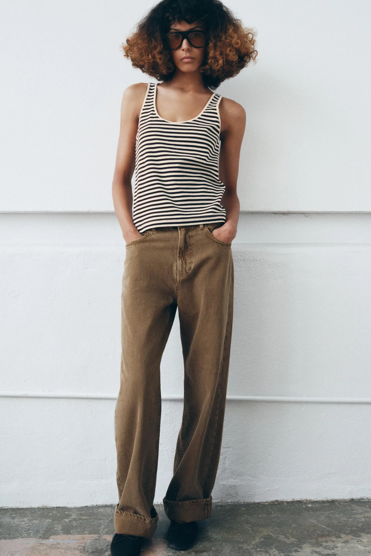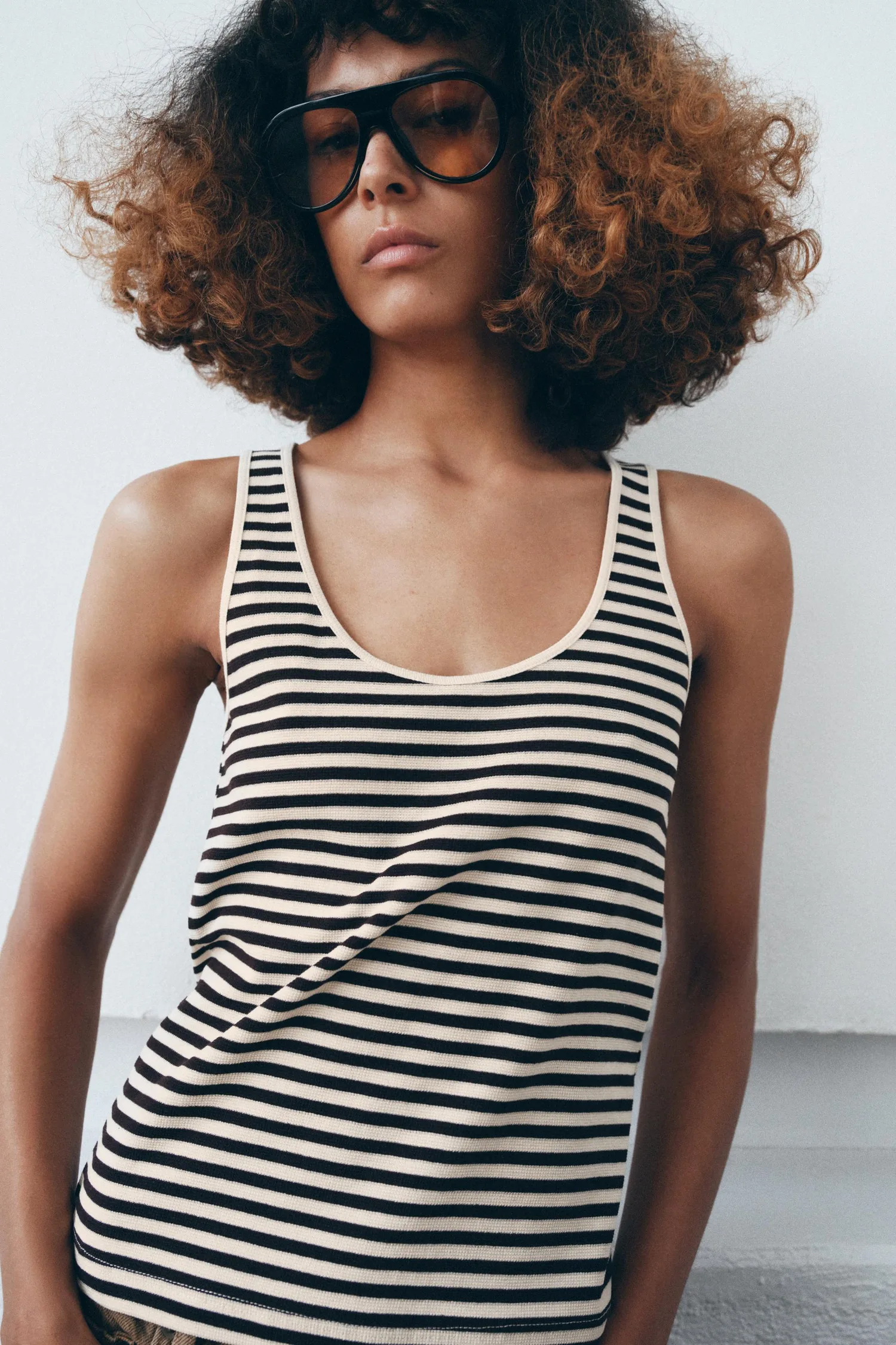 Топ из основной ткани, изготовленной из хлопчатобумажной пряжи. Круглый вырез, без рукавов. Прямой низ.
