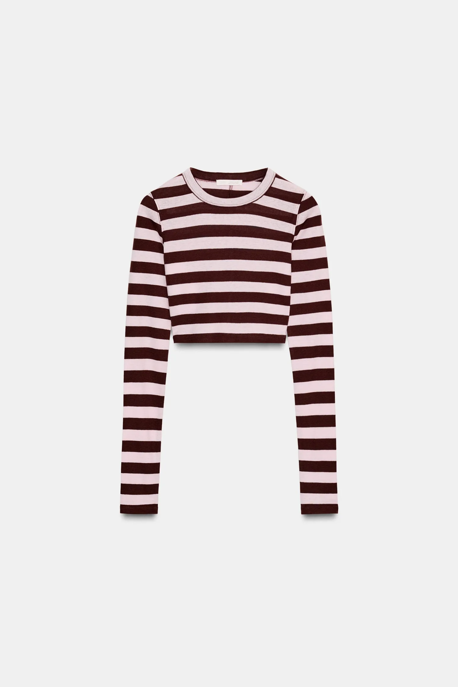 Короткий топ из хлопковой пряжи. Круглый вырез и длинные рукава. Прямой низ.