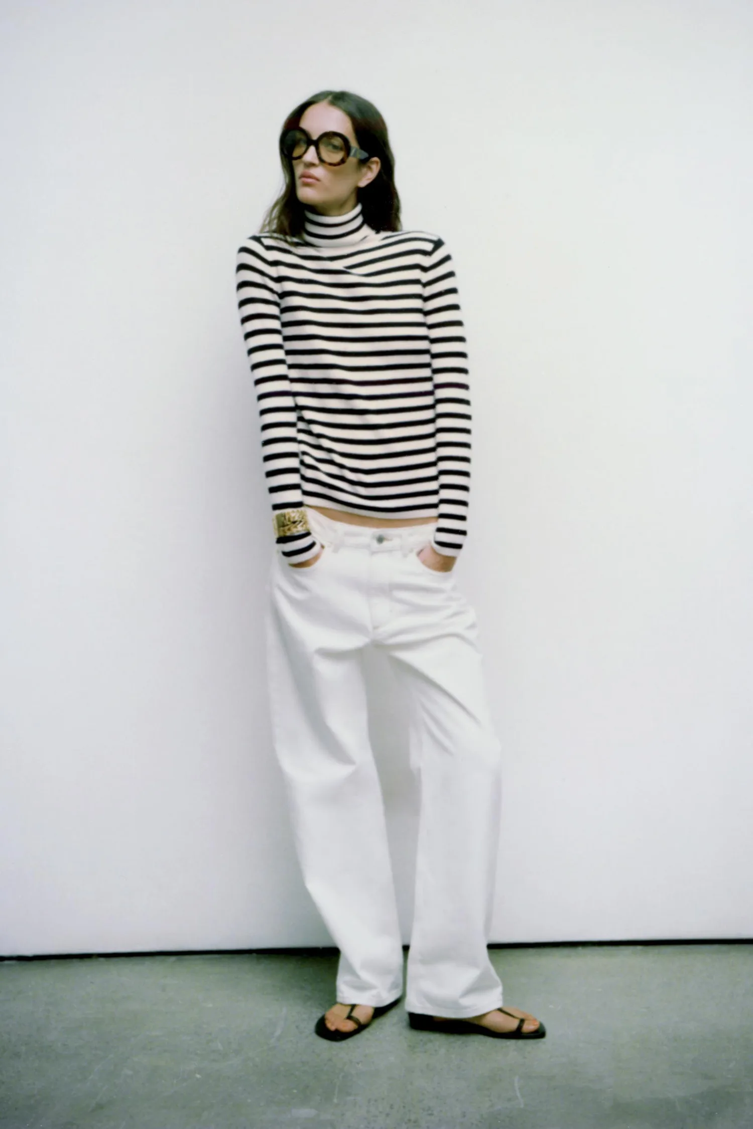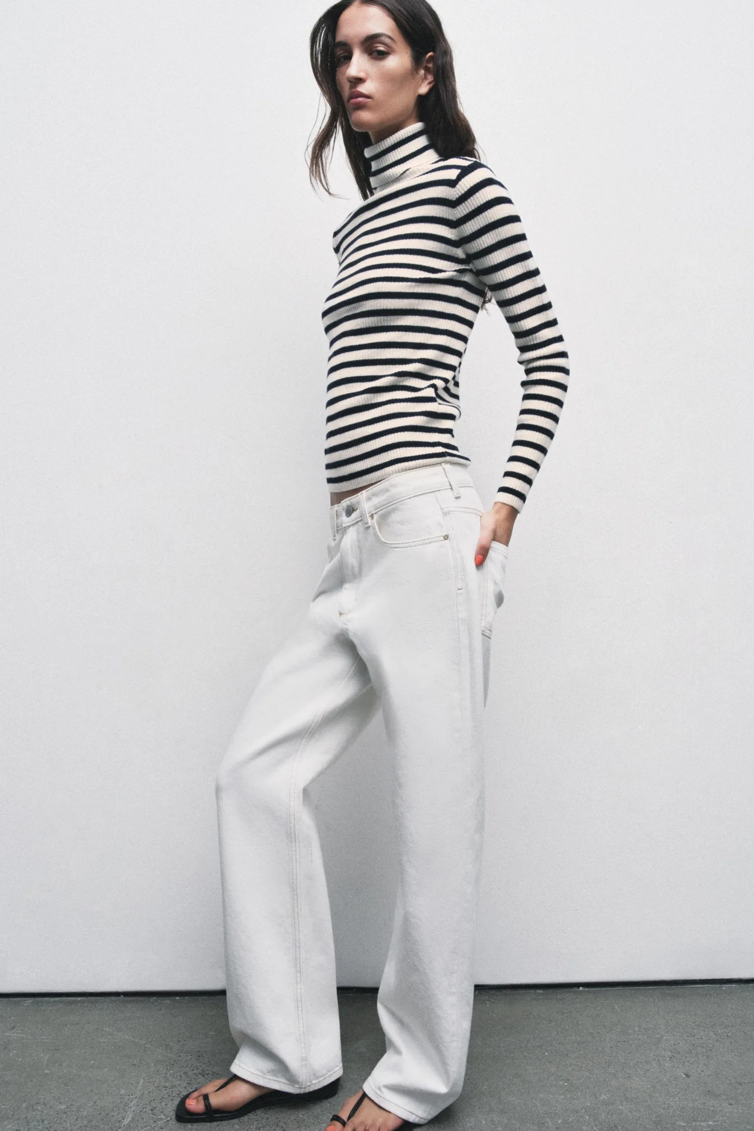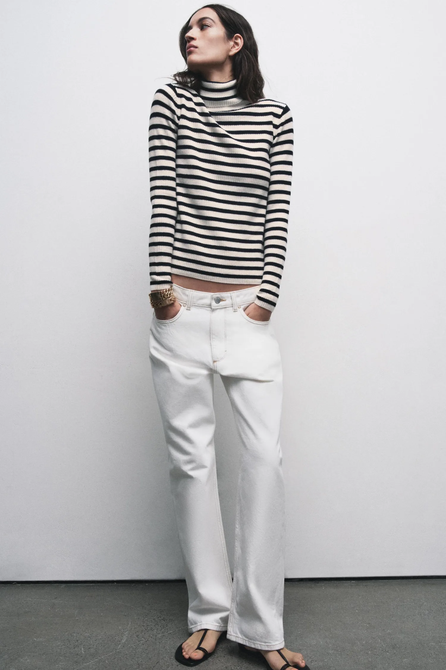 Джемпер с высоким воротником и длинными рукавами.
