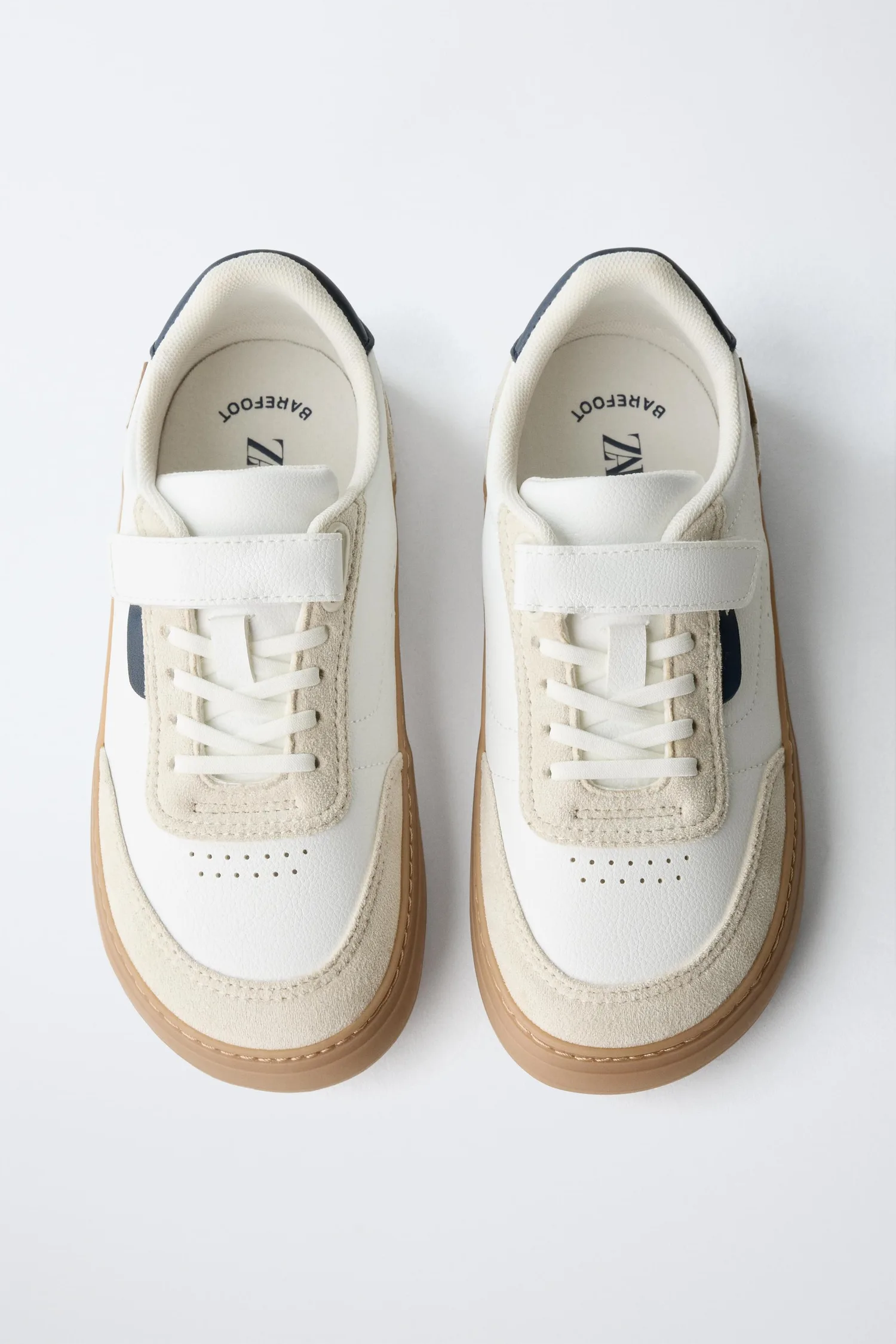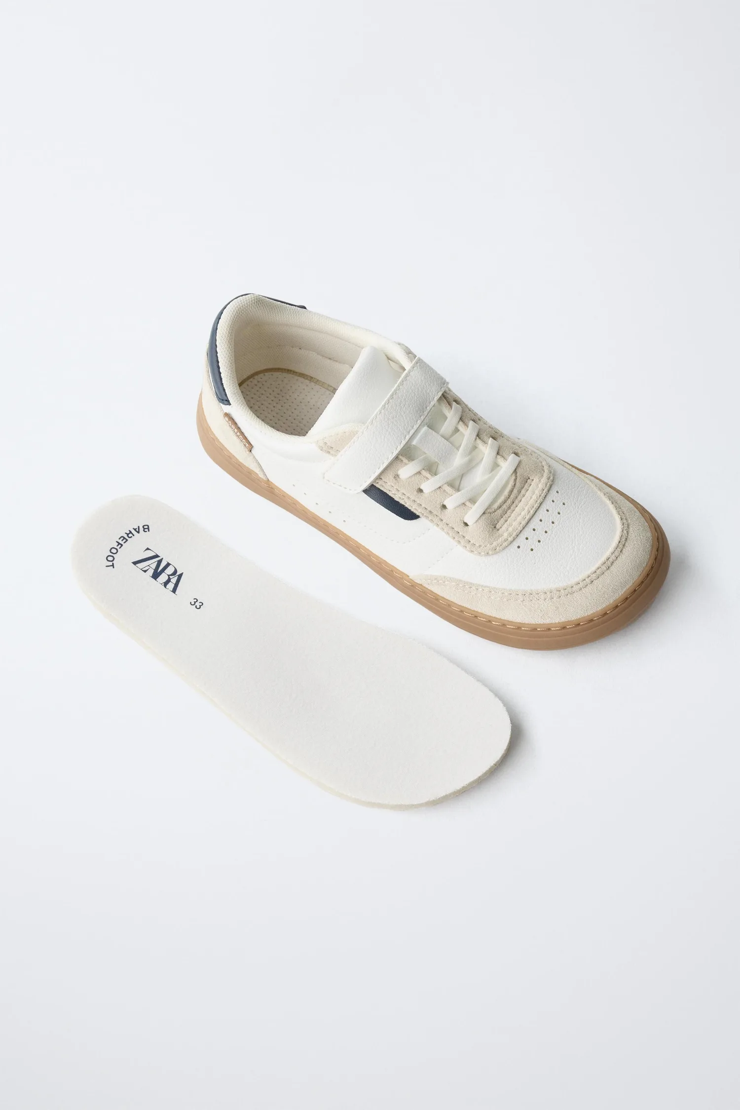 Школьные кеды для ходьбы босиком. Застегиваются на эластичные шнурки и клейкую ленту. Закругленный, широкий и функциональный носок, обеспечивающий свободу движений пальцев. Регулируемая застежка на эластичные шнурки. Петля сзади для удобного надевания и снимания. Гибкая и съемная стелька. Контрастная по цвету гибкая резиновая подошва с нулевым перепадом высоты и очень гибким задником.