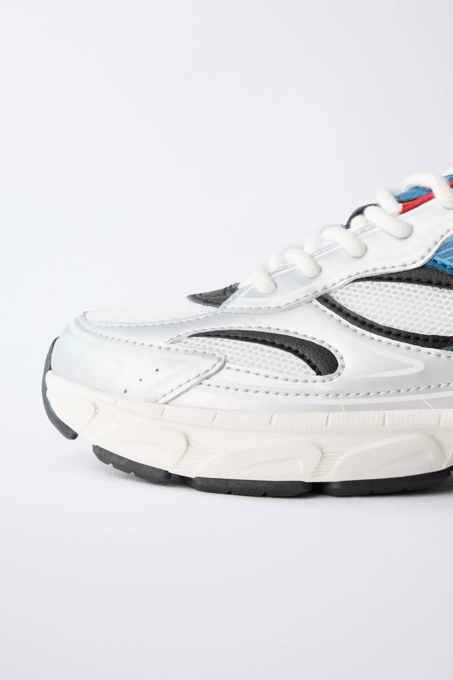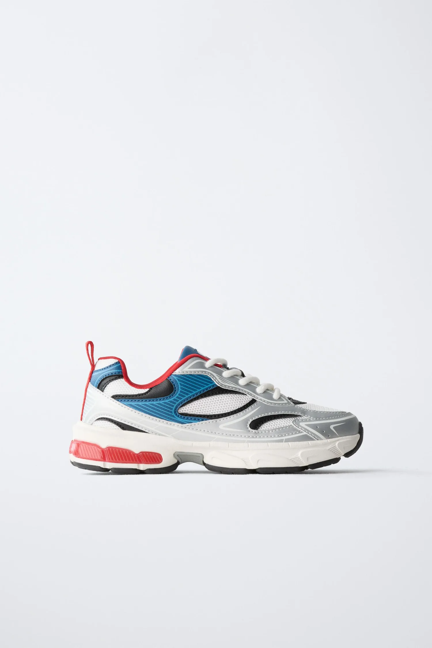Спортивные кроссовки с сетчатыми вставками. Петля сзади для удобного надевания. Регулируемая шнуровка. Стелька OrthoLite. Резиновая подошва с декоративной отделкой на пятке.