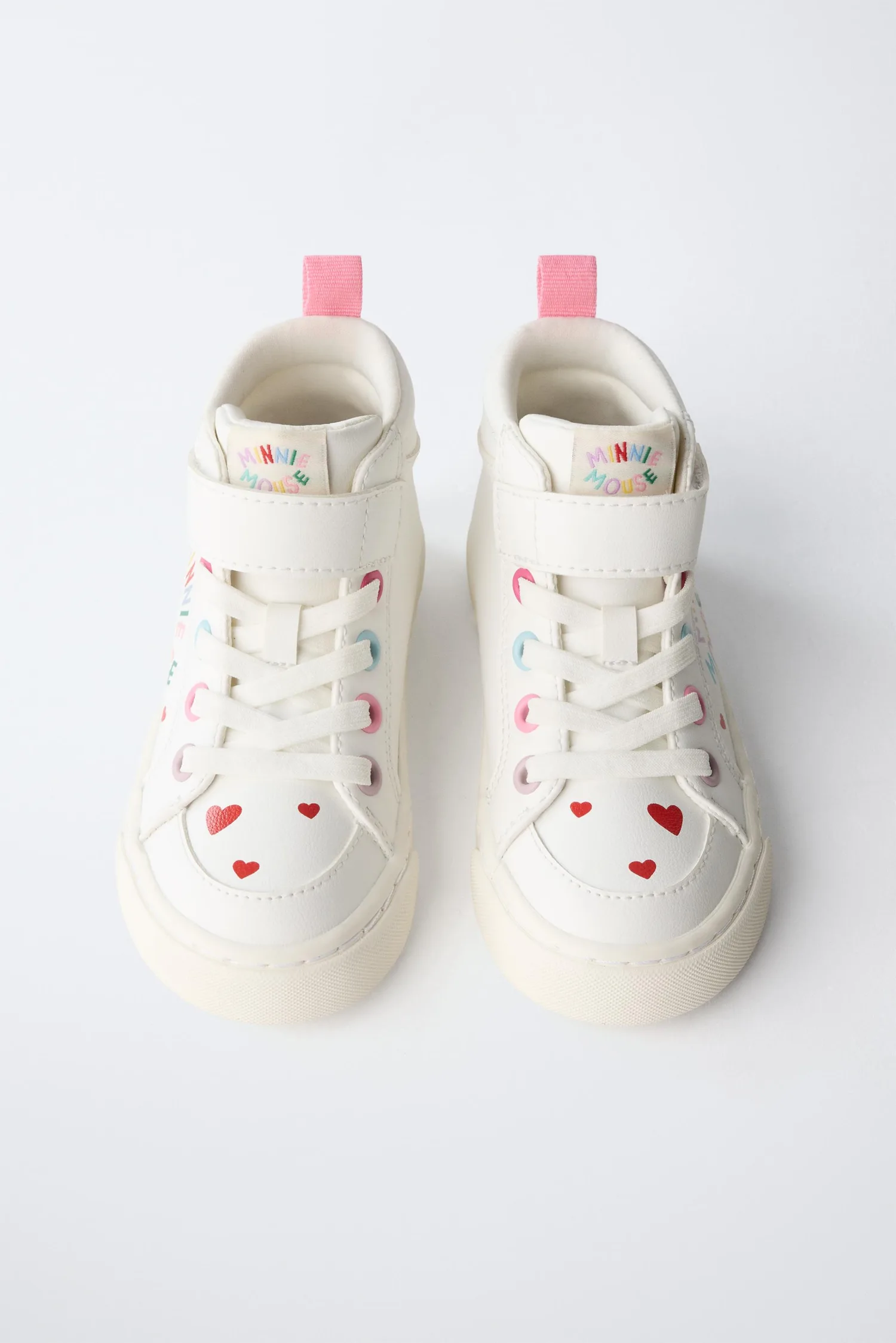 Высокие кроссовки MINNIE MOUSE © DISNEY с декоративными деталями на подъеме. Шнуровка и клейкая лента на подъеме. Гибкая стелька. Резиновая подошва.