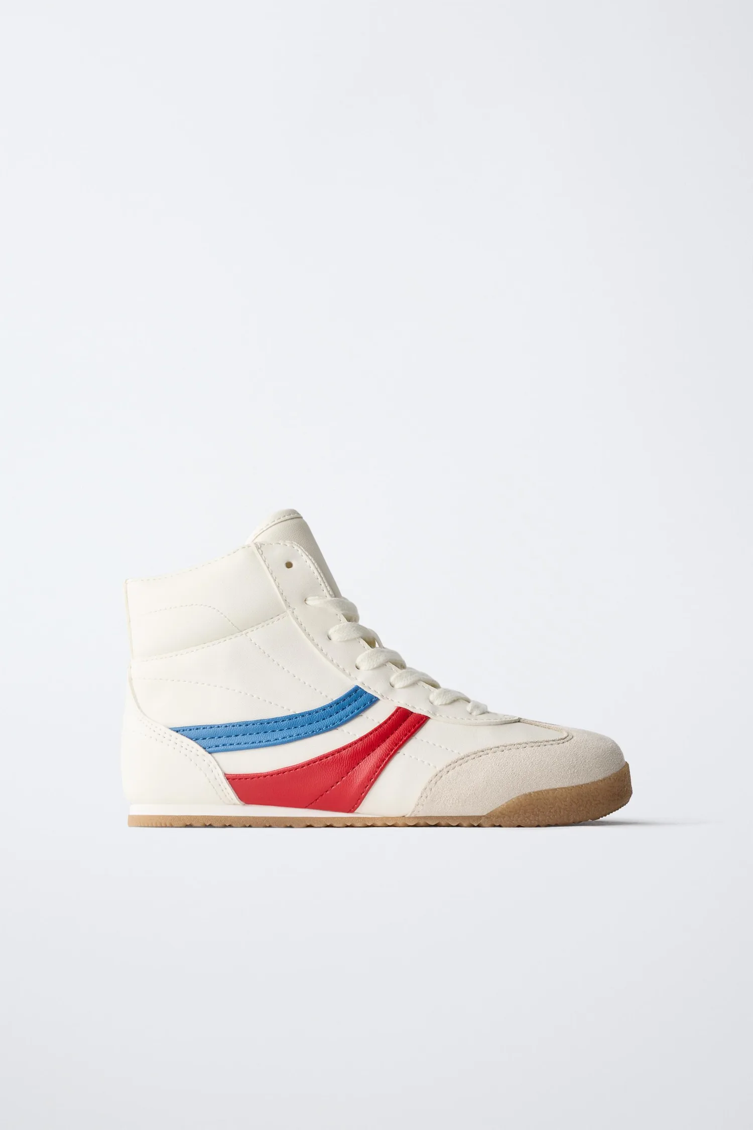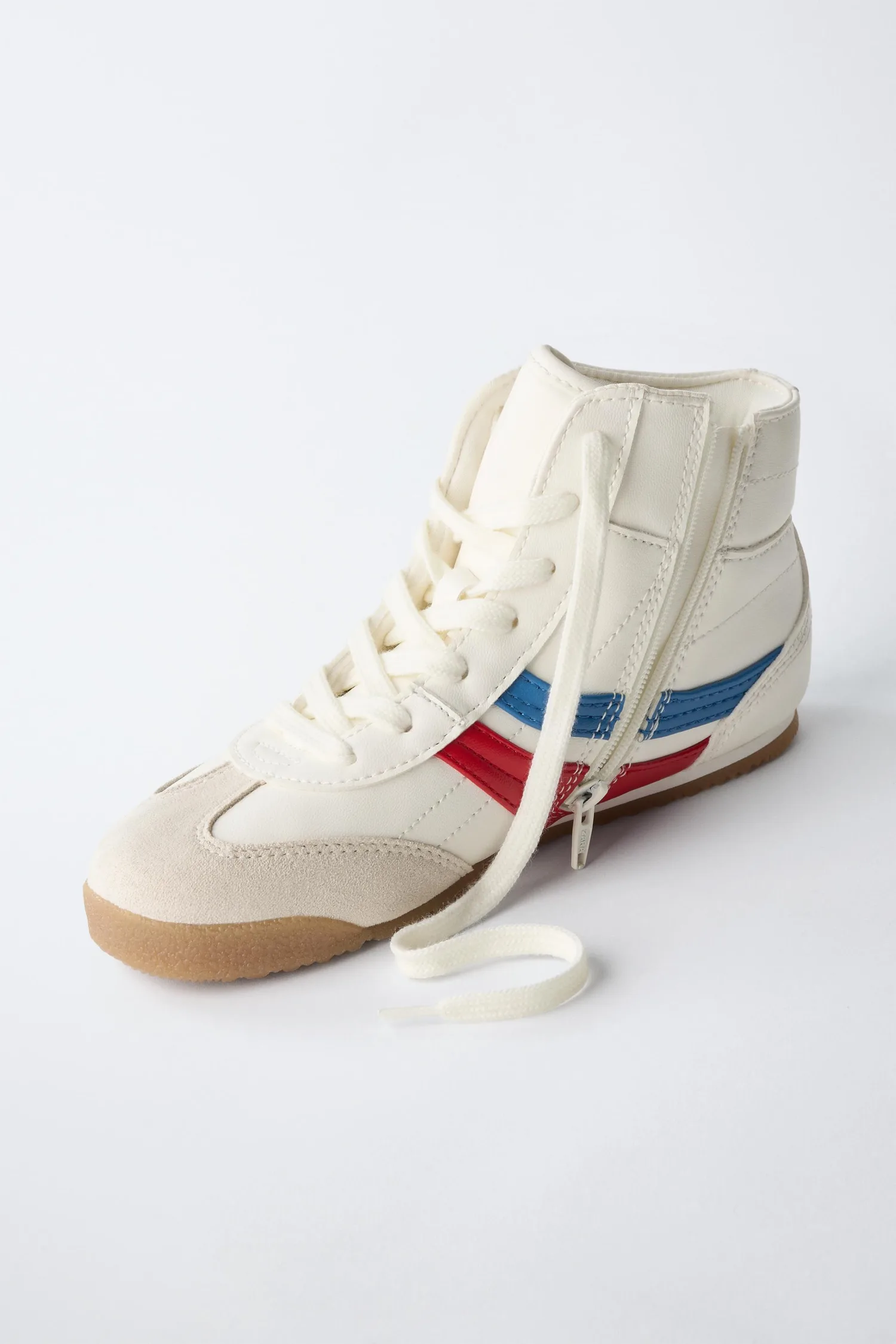 Высокие кроссовки в стиле ретро с контрастными цветами. Регулируемая шнуровка и боковая молния. Стелька OrthoLite. Резиновая подошва контрастного цвета.