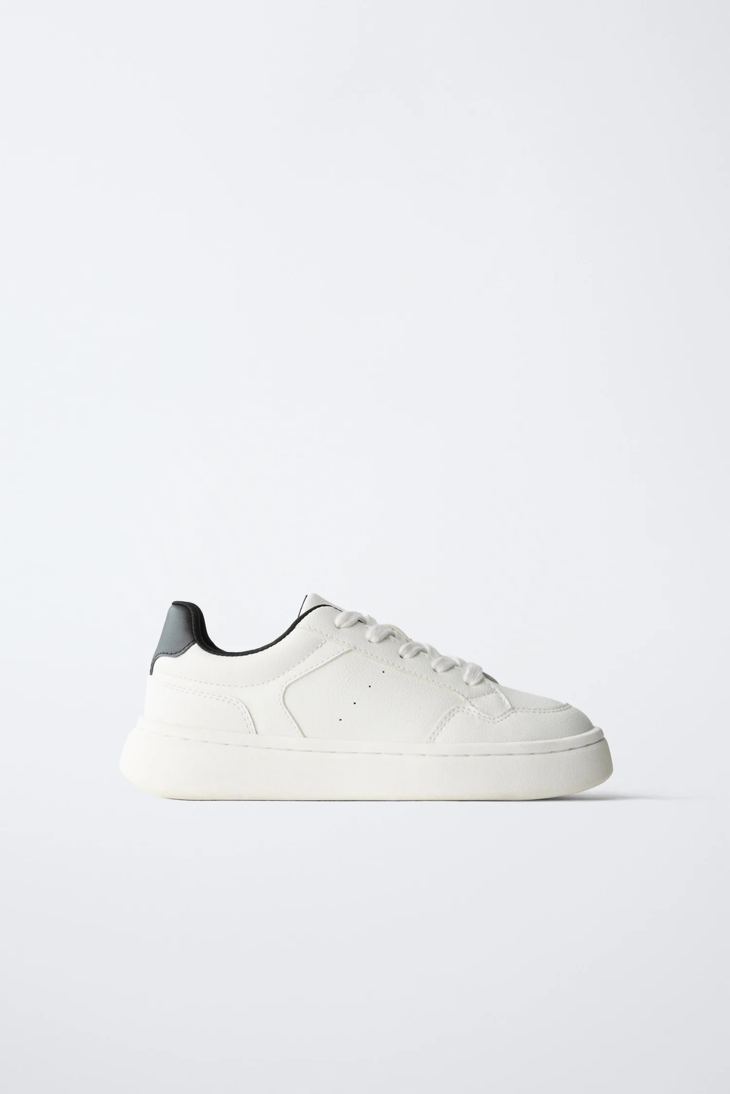 Простые кроссовки с контрастной деталью на заднике. Регулируемая шнуровка. Гибкая стелька. Массивная резиновая подошва.