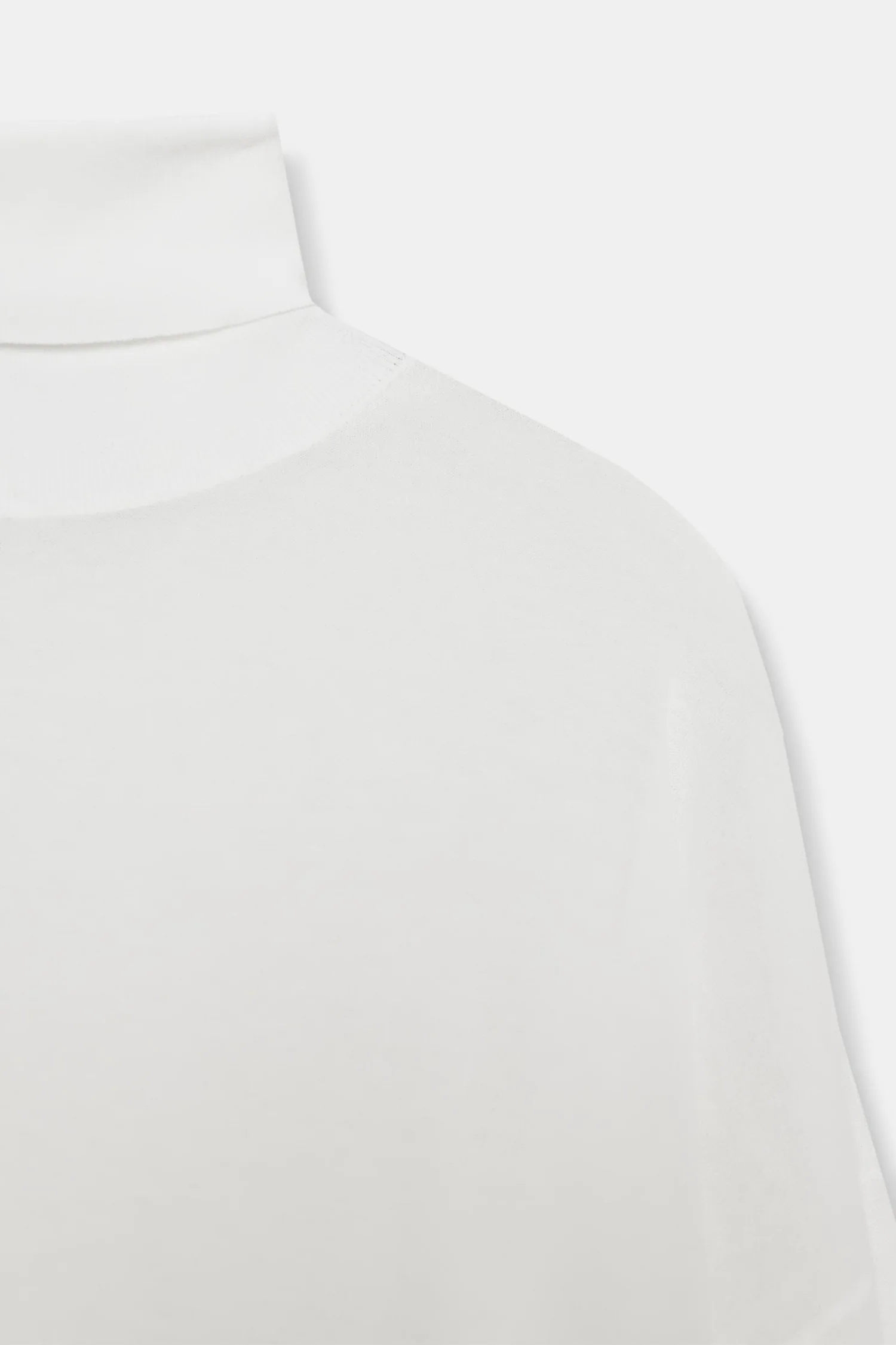 Тонкий вязаный джемпер с высоким воротником и длинными рукавами, имеющий широкие проймы, сужающиеся к запястью.
