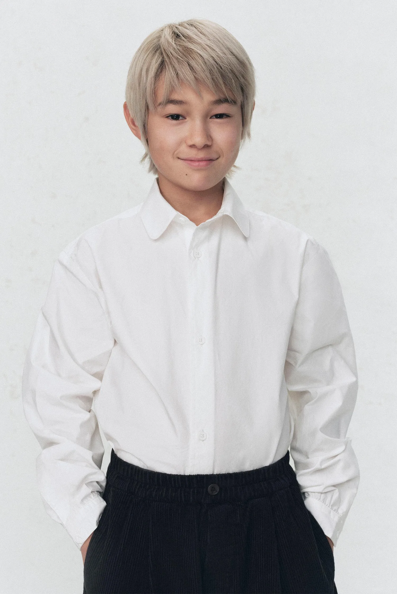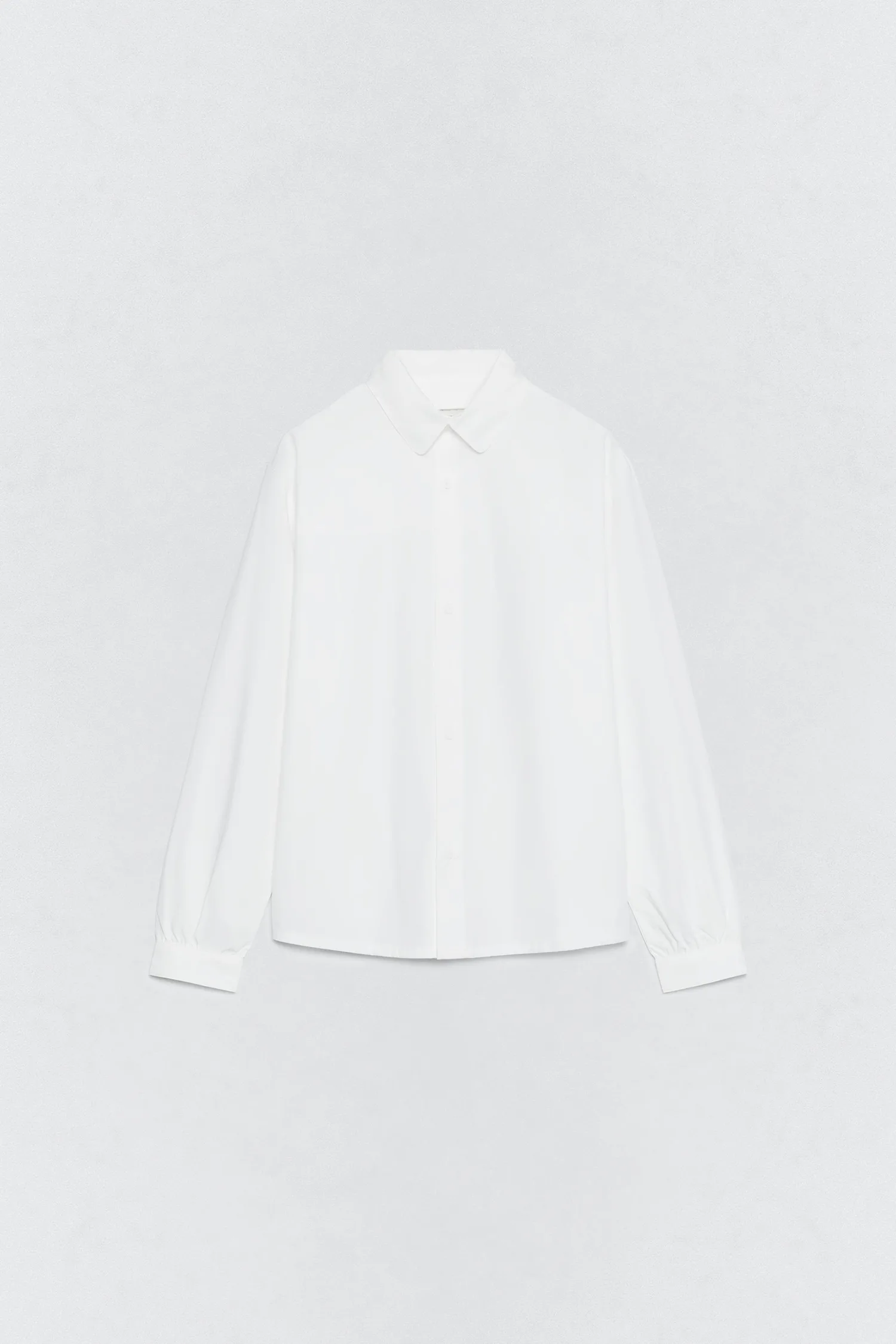 Рубашка с длинными рукавами и воротником. Застежка на пуговицы спереди.