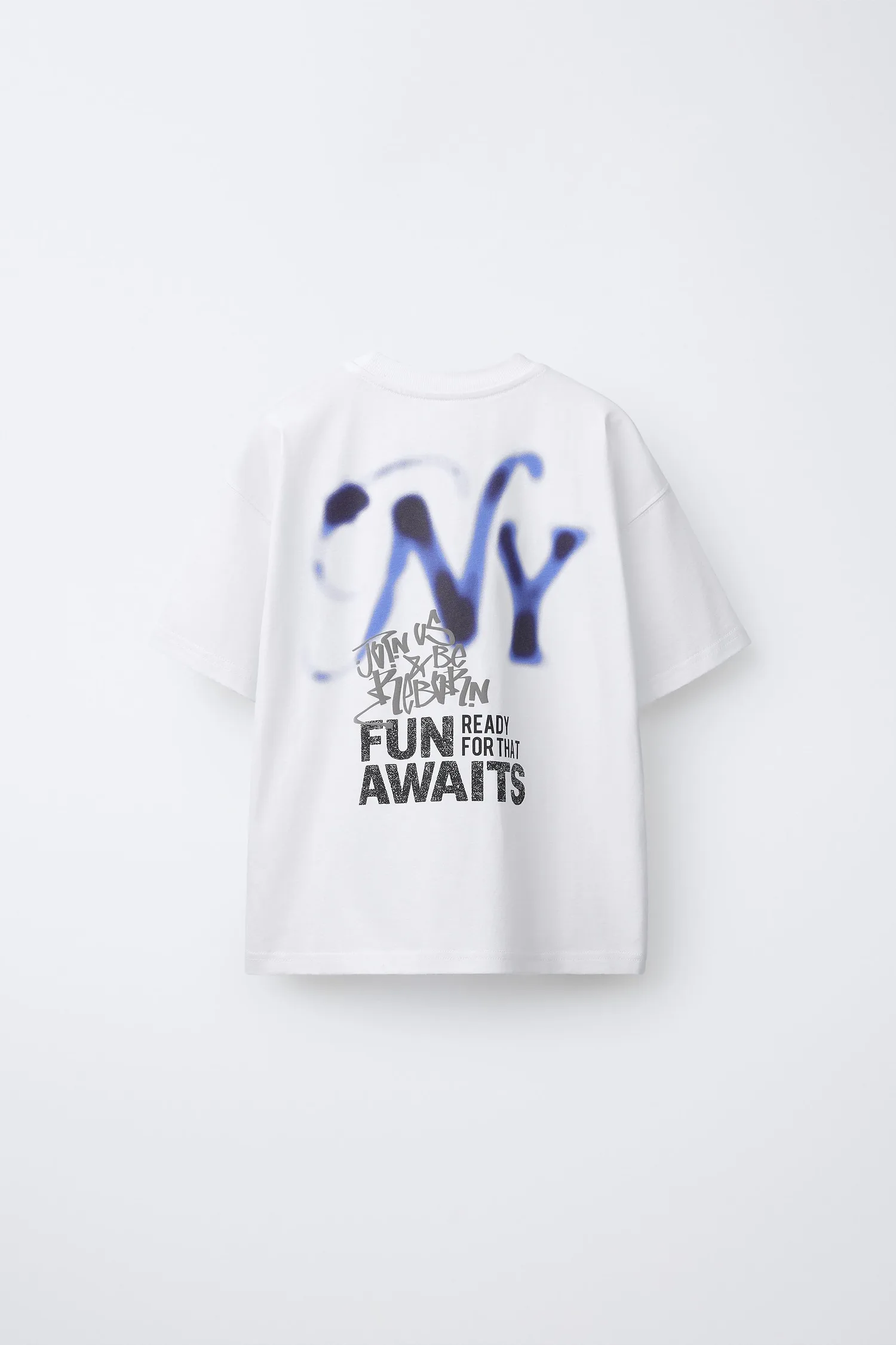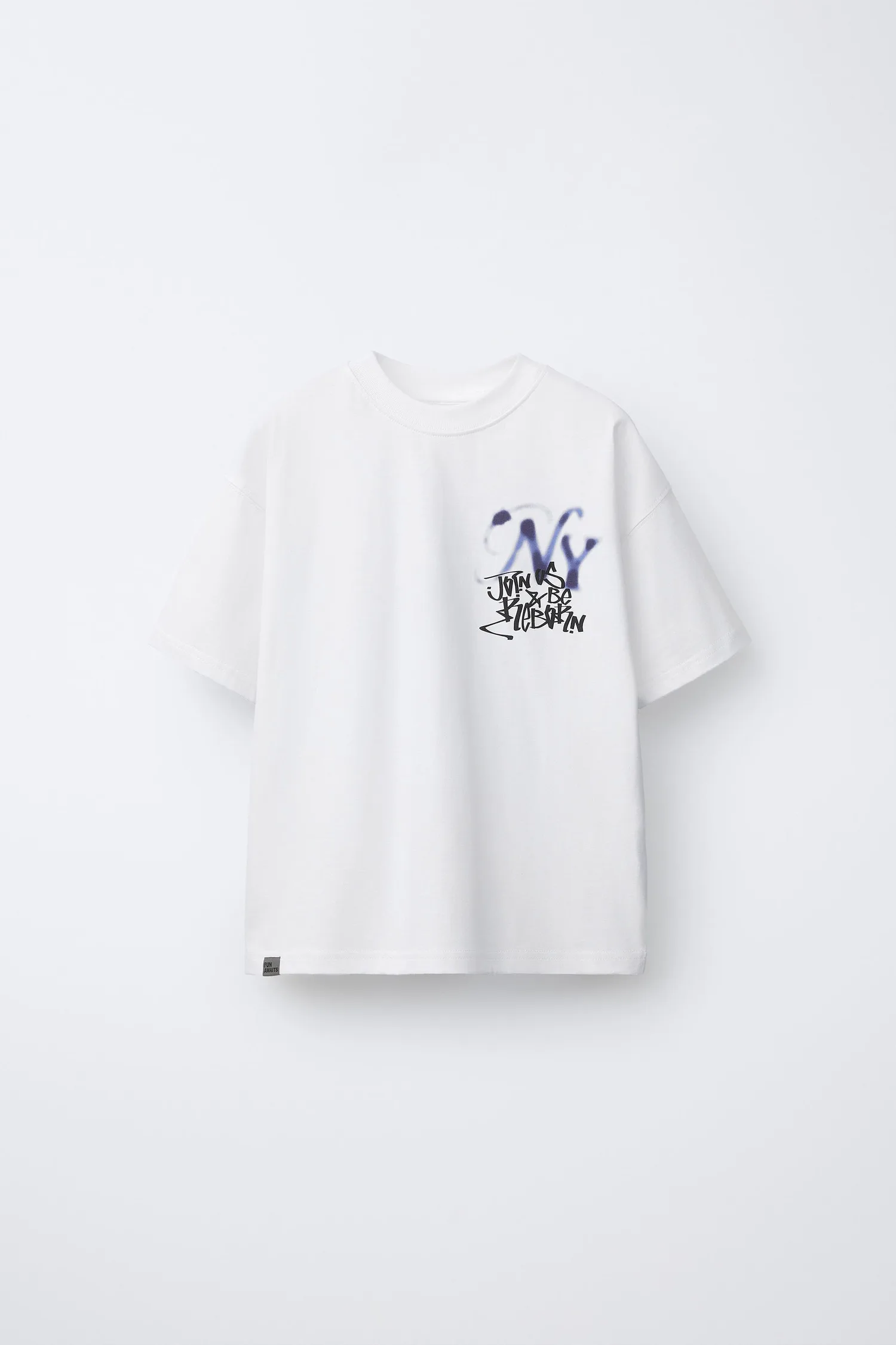 Футболка с коротким рукавом и круглым вырезом. С принтом спереди и сзади, а также нашивкой-этикеткой по низу.