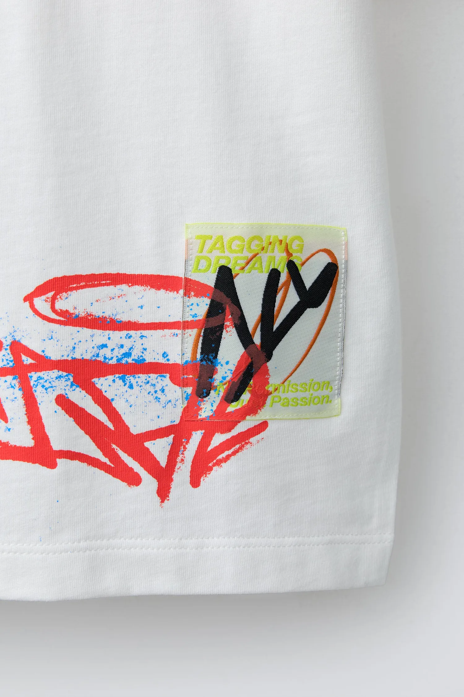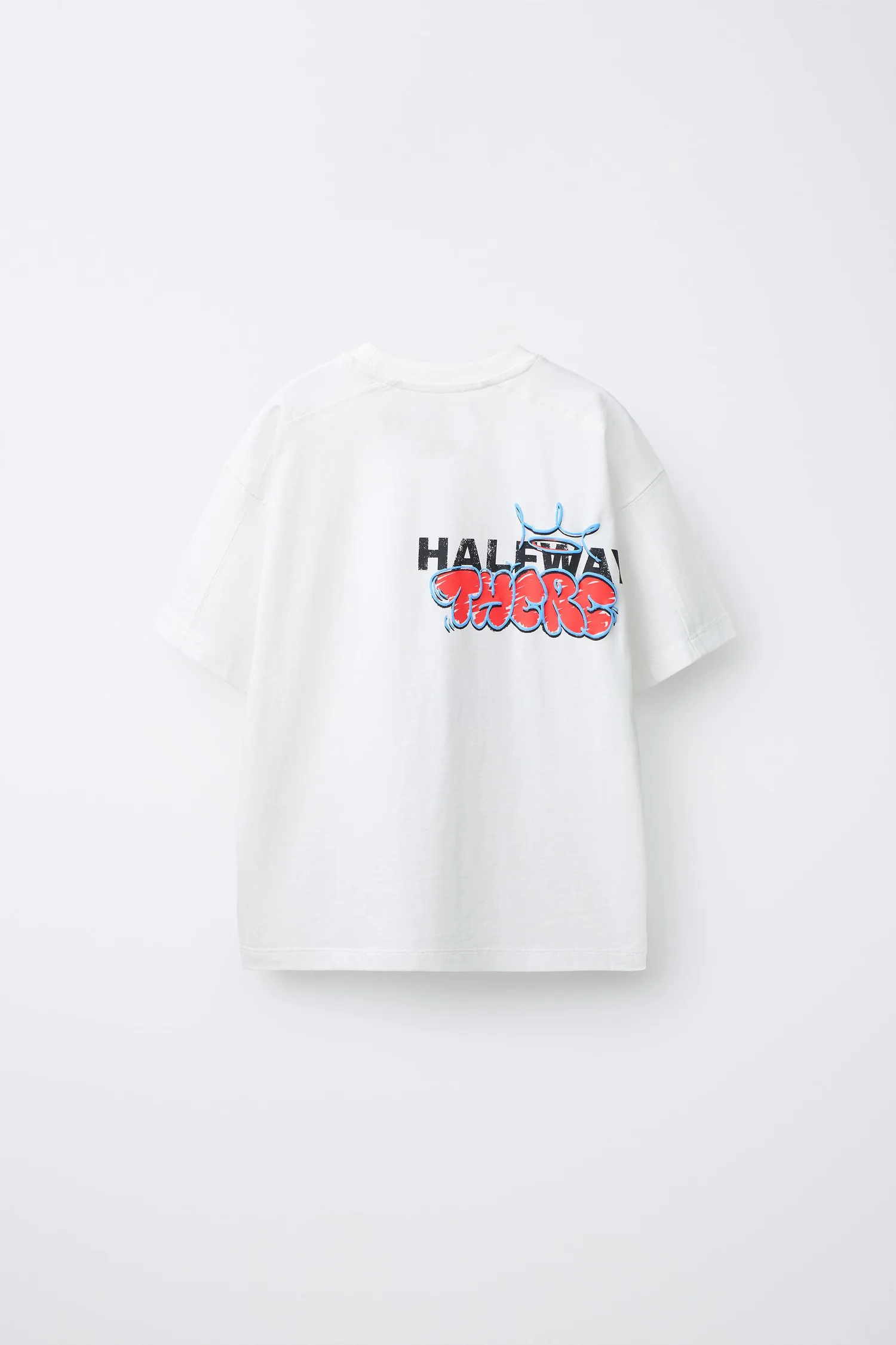 Футболка с коротким рукавом и круглым вырезом. С принтом спереди и сзади.