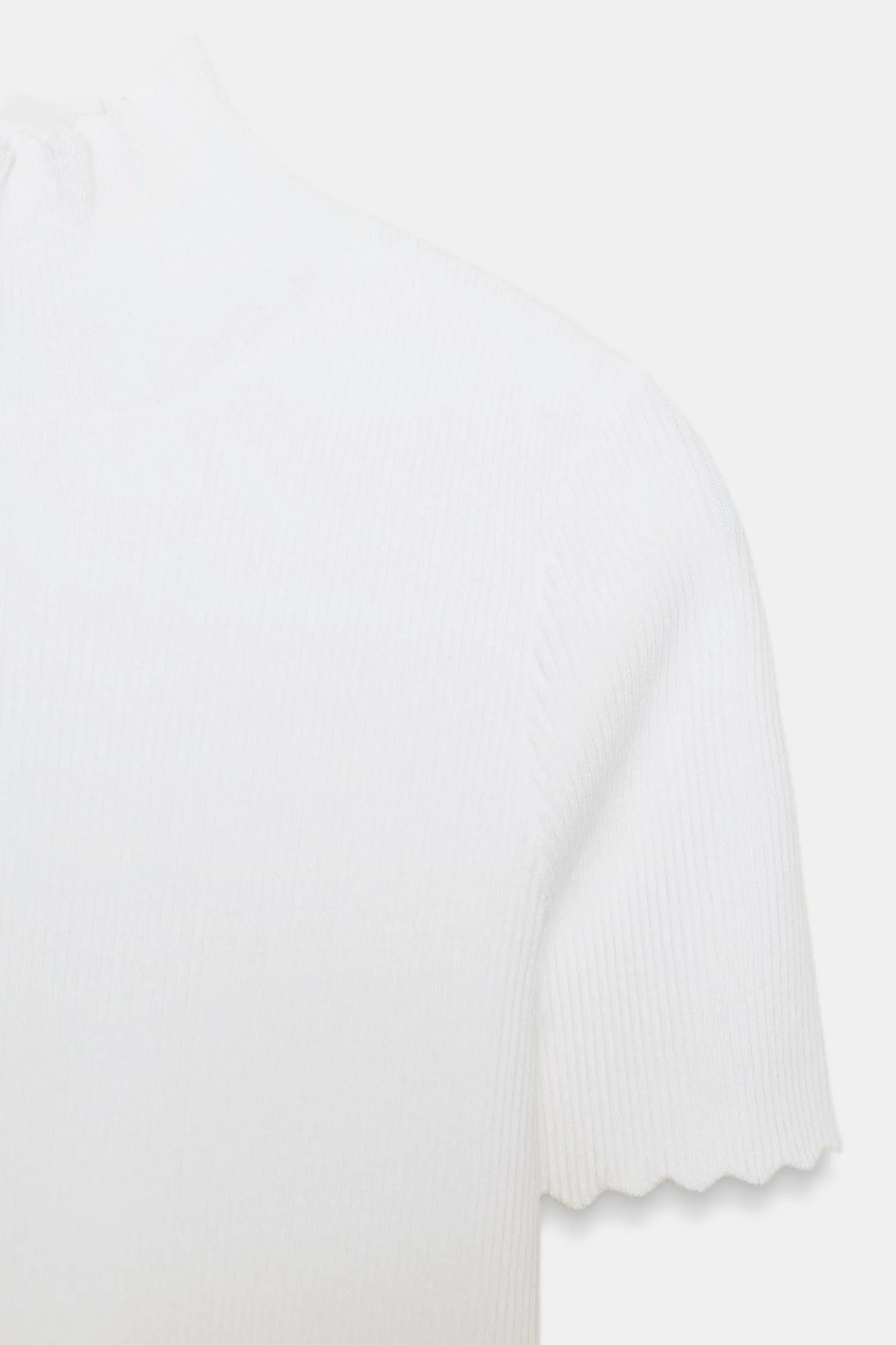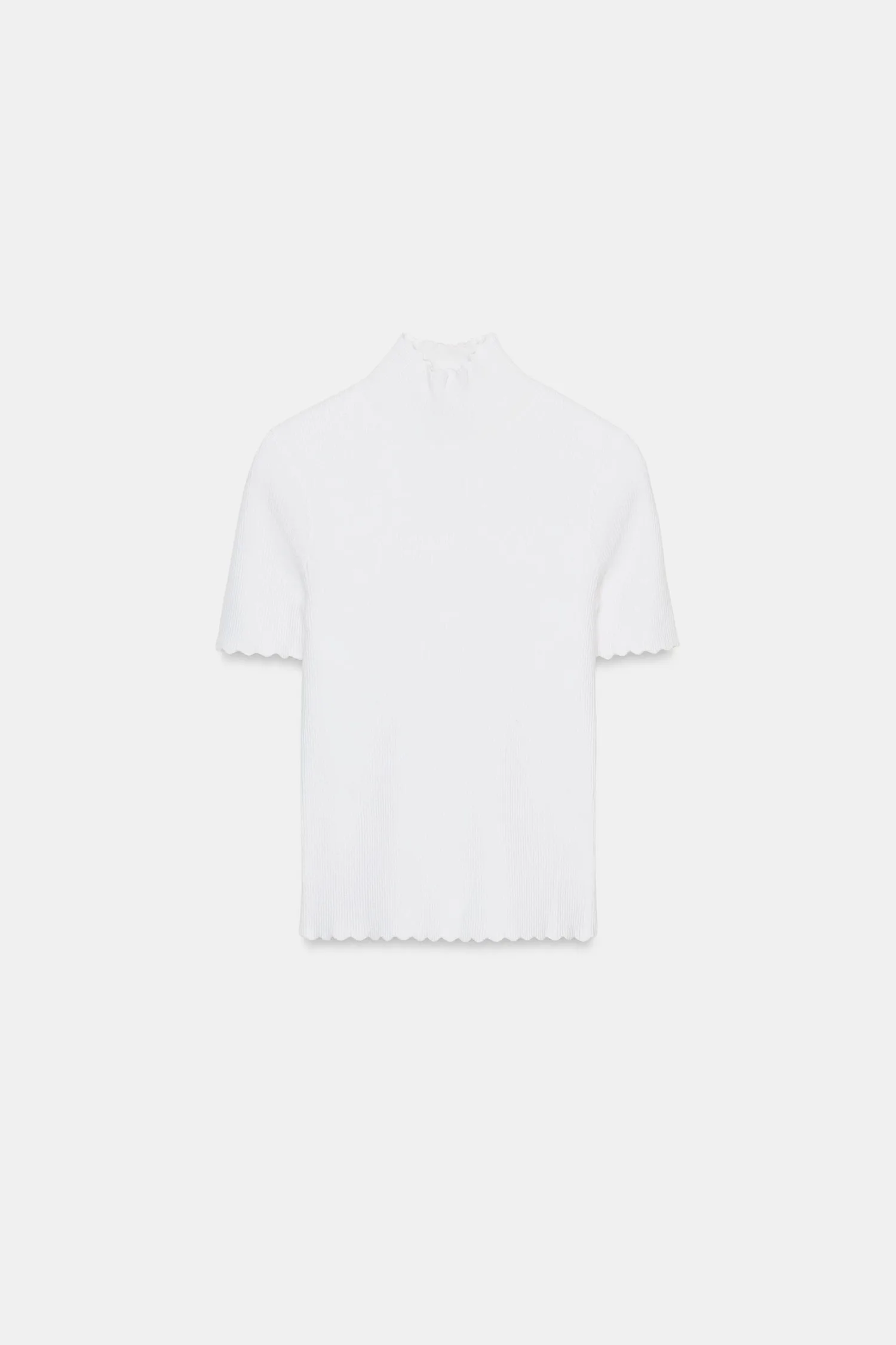 Тканый топ в рубчик с высоким воротником и короткими рукавами.