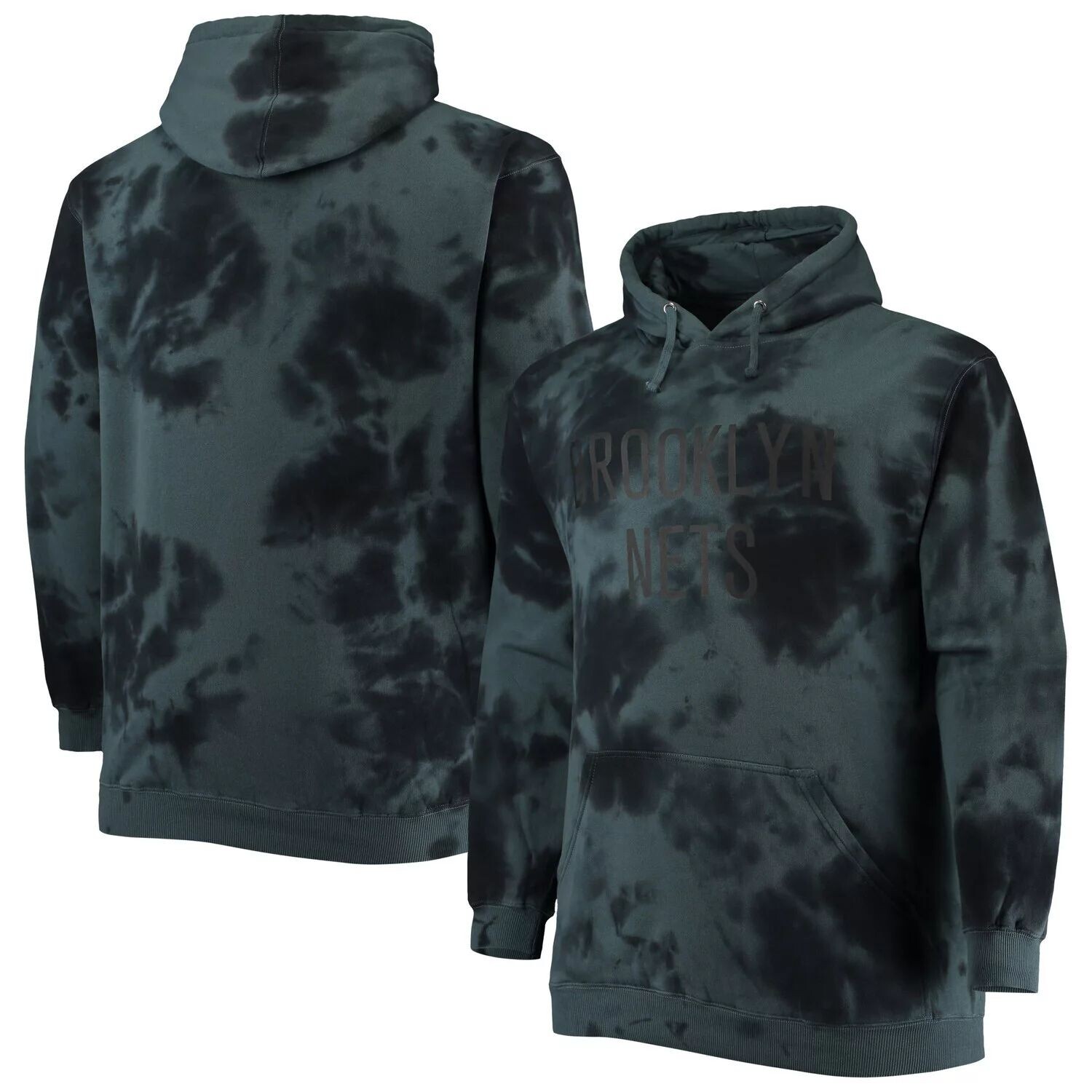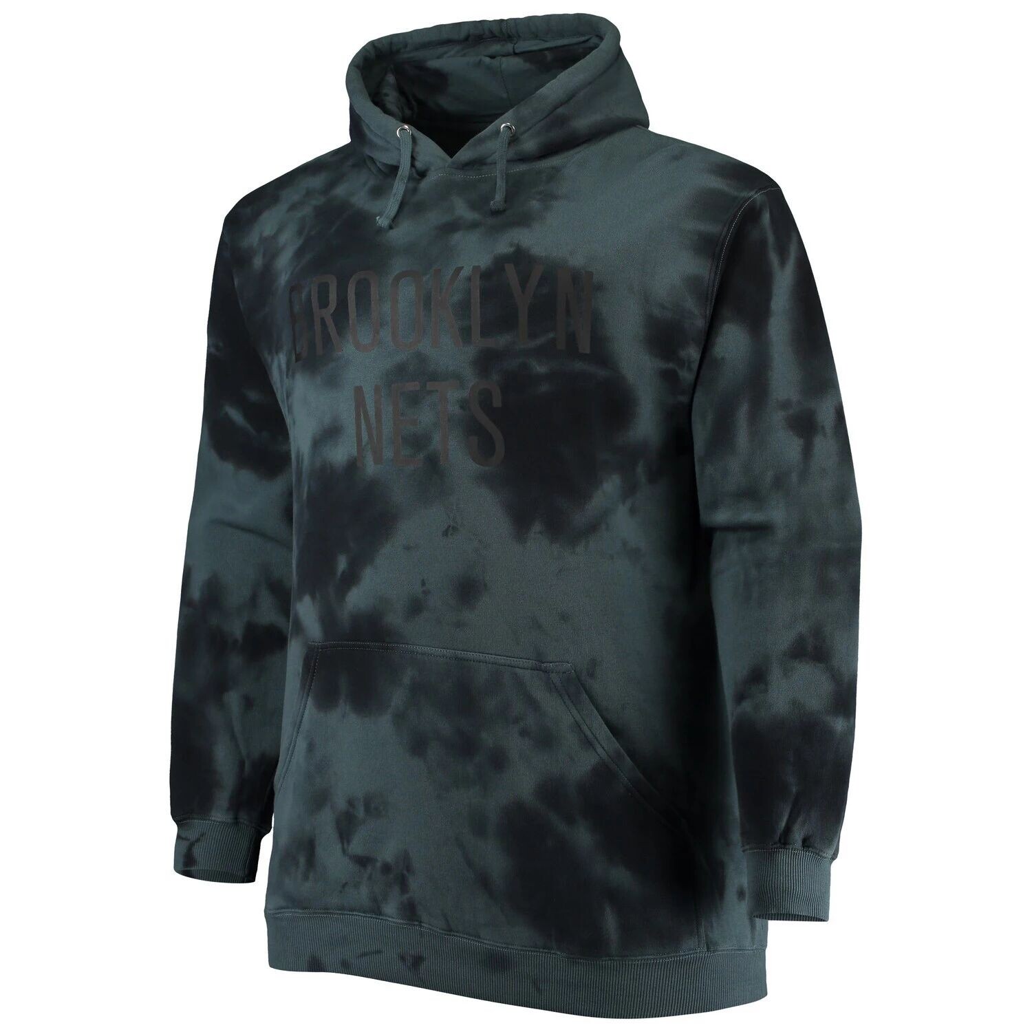 Мужской черный пуловер с капюшоном Brooklyn Nets Big & Tall с надписью Cloud Dye Fanatics