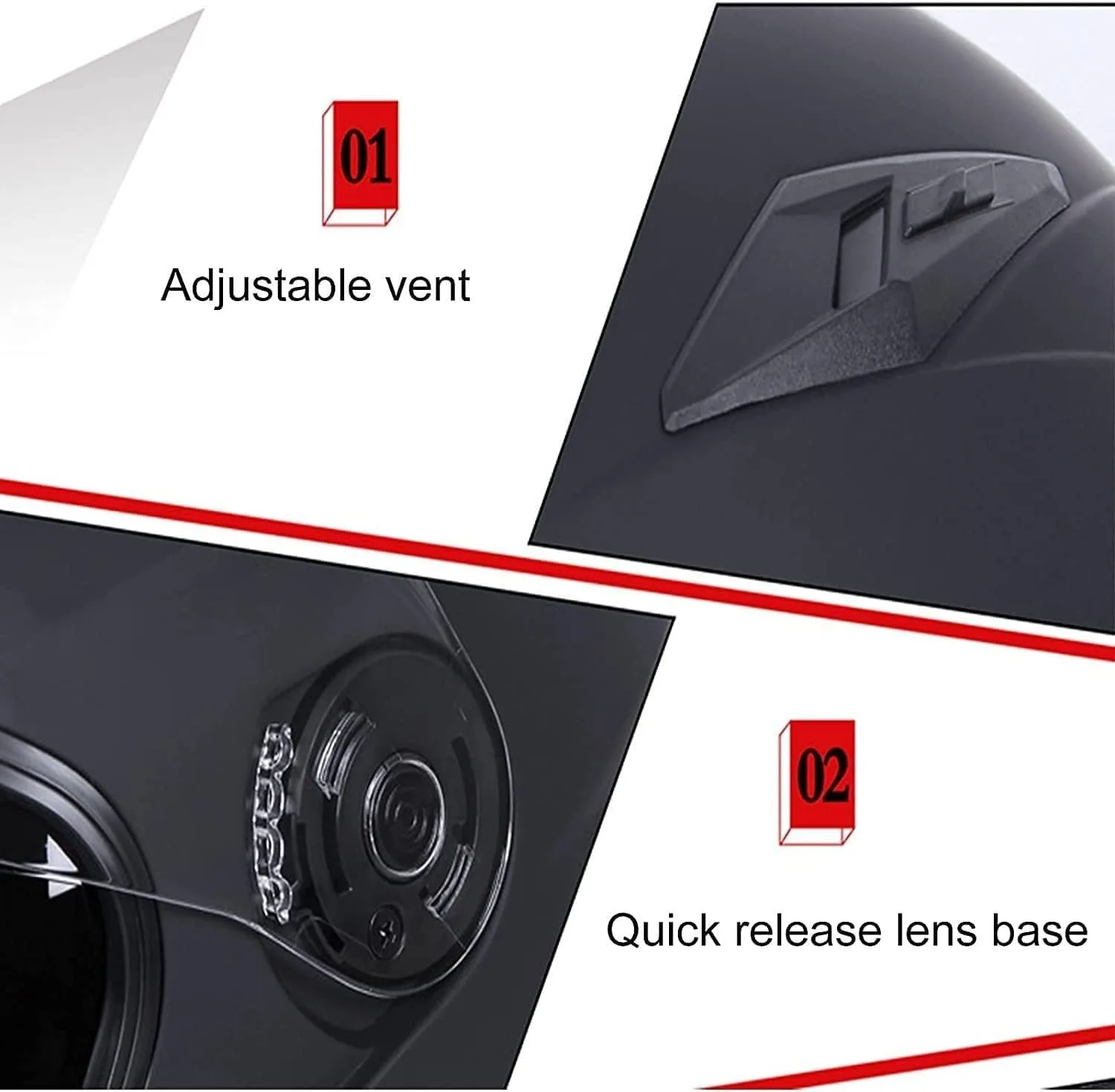 • ▶▶Профессиональный мотоциклетный шлем: Шлем соответствует стандартам безопасности DOT FMVSS-218/ECE R2205. Это означает, что он одобрен для всех видов дорожного движения в Европе и США и является очень важным средством обеспечения безопасности во время активного отдыха на природе.