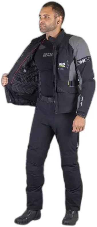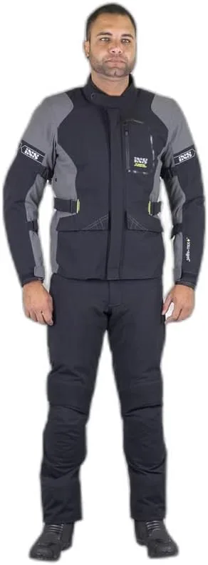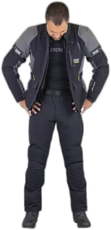 Мотоциклетные брюки IXS ST-Plus из ламинированного текстиля. Мотоциклетные брюки IXS ST-Plus изготовлены из двухслойного ламинированного материала Solto-Tex Plus и идеально дополняют одноименную куртку. Особенности: брюки из двухслойного ламинированного материала Solto-TEX PLUS. Благодаря двухслойному ламинированному внешнему материалу брюки не дают усадки под дождем и полностью высыхают за считанные минуты. Очень дышащие, с водоотталкивающими свойствами для оптимального микроклимата тела. Съемная термоподкладка, регулировка талии с помощью ремня. Нескользящая отделка на ягодицах. Эластичные вставки в области промежности и задней части коленей. Регулировка ширины штанин, 2 внешних кармана, 2 вентиляционных отверстия на бедрах. Светоотражающие серебристые принты. Азимутальная соединительная молния. Регулируемые по высоте наколенники. Технические характеристики: Наколенники, уровень 2, ImpTP-02 (EN 1621-1: 2012); Защита бедра, уровень 1, Impact Tec ETP-03 (EN 1621-1: 2012); Защитная одежда класса AA (EN 17092-3: 2020).