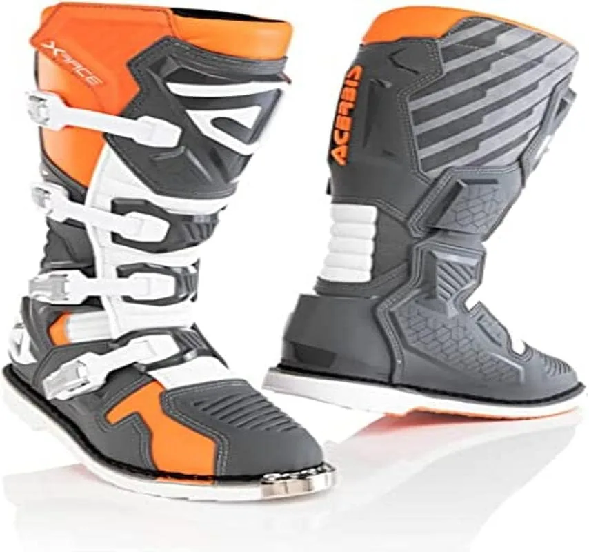 Мотокроссовые ботинки Acerbis X-Race. Компания Acerbis продолжает разрабатывать инновационные и защитные продукты с тем же энтузиазмом и страстью, которые были у основателей Acerbis в последние годы. Особенности конструкции: легкие, защитные и анатомические ботинки. Верх из износостойкой кожи и микрофибры. Молния в области лодыжки между защитой плюсневой кости и манжетой голени, обеспечивающая гибкость вращения стопы и контроль над движением ноги. Анатомически сформированная и усиленная защита голени. Формованная защита пятки для ускорения переключения передач при старте. Защита стопы и расширенный капюшон пальцев ног внутри и снаружи из пластика с ребрами для лучшего поглощения ударов. Застежка на 4 больших алюминиевых рычага. Эксклюзивная подошва Acerbis: ударопрочная, маслостойкая, бензиностойкая и износостойкая. Широкая поверхность подошвы для лучшего сцепления с подножками. Амортизирующая предварительно сформированная стелька. Внутренний материал из 3D-сетки для превосходного комфорта и вентиляции. Пенопластовая подкладка вокруг лодыжек. Примечания: EN 13634: 2017