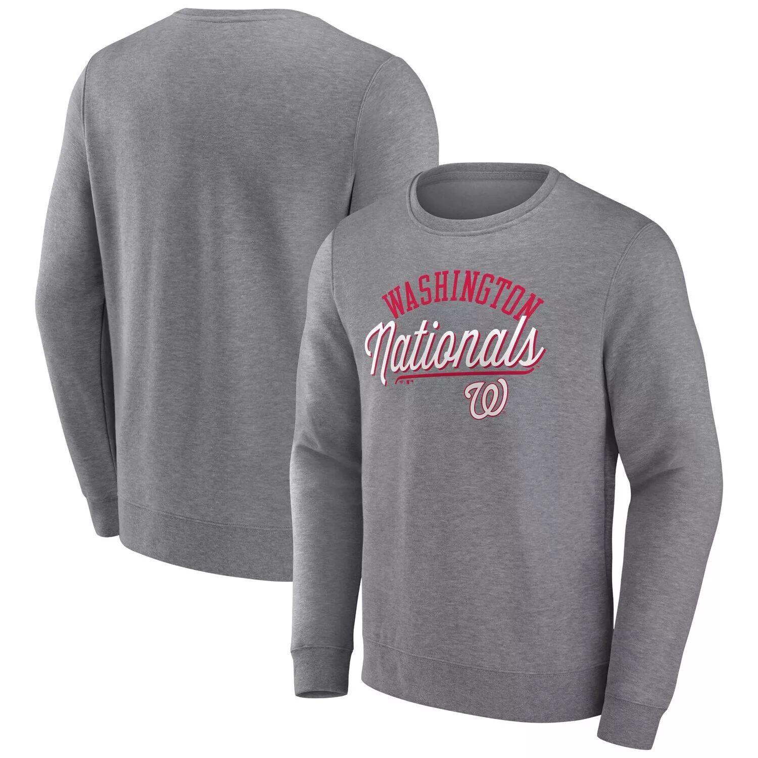 Мужской пуловер с логотипом Heather Grey Washington Nationals Simplicity Fanatics