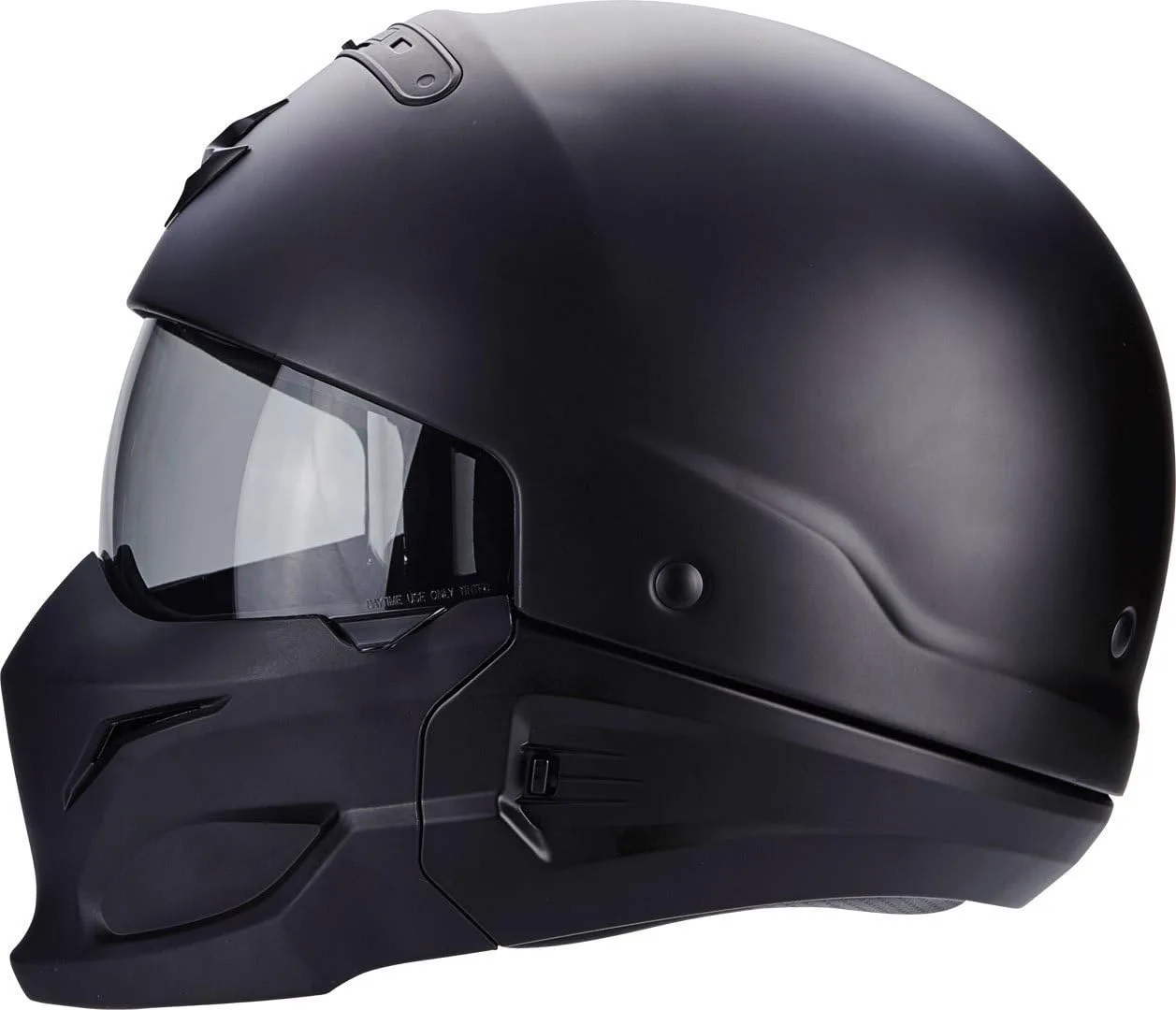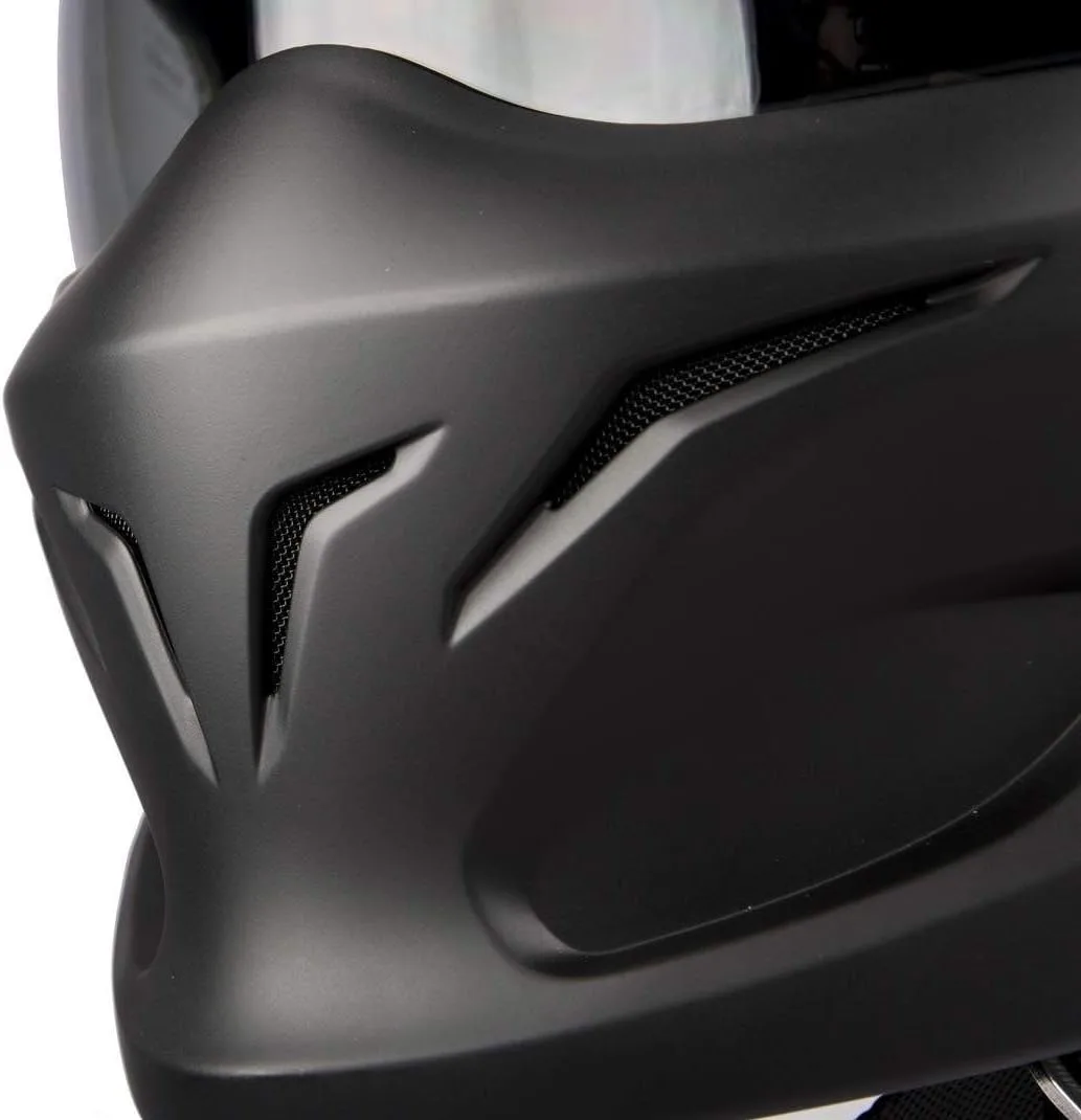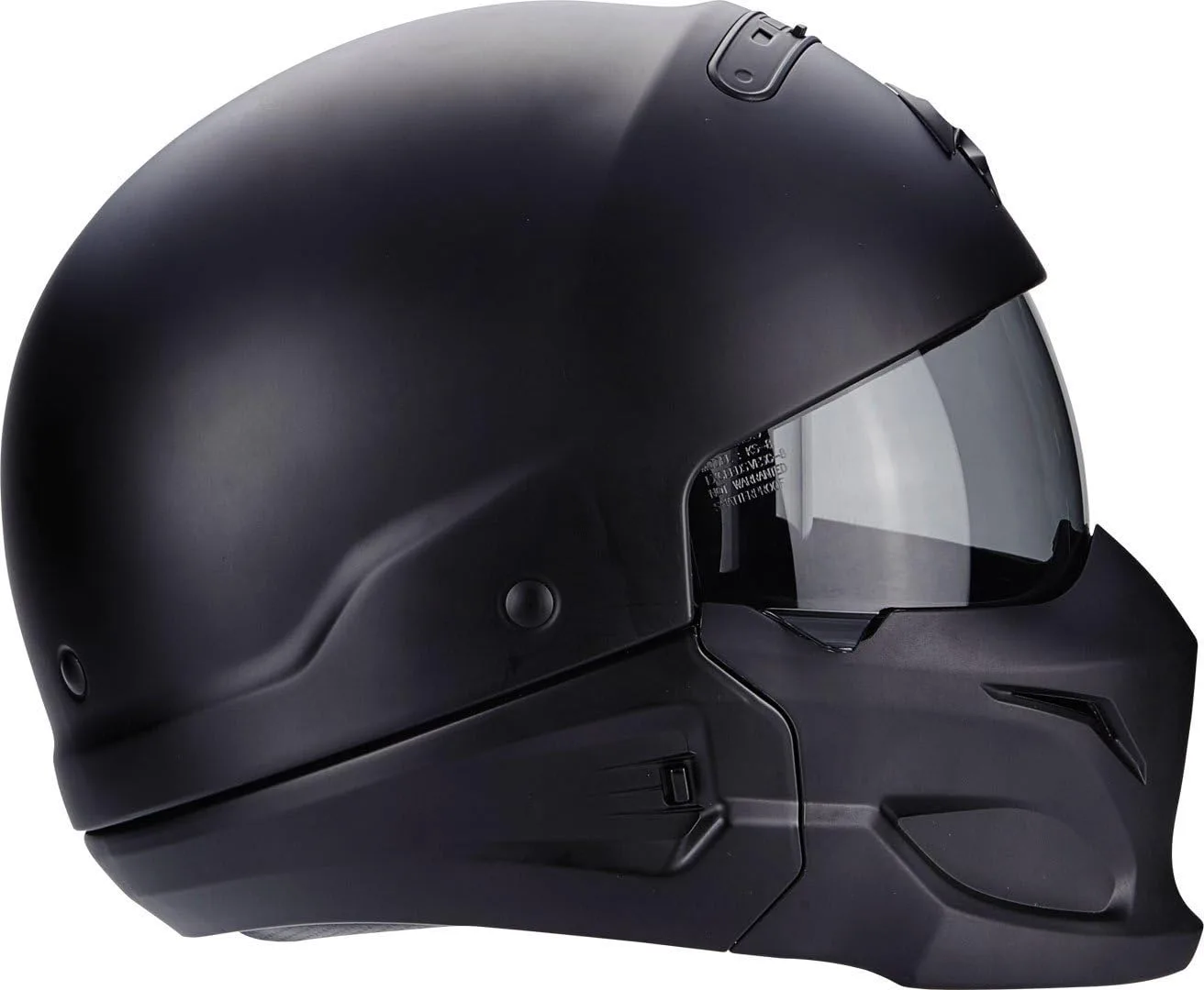 Изготовлен из поликарбоната. Встроенный солнцезащитный козырек: да. Дополнительное противотуманное покрытие: да. Устойчивый к царапинам козырек: да. Подбородочный ремень: пряжка Microlock. Надувные подушечки для щек: нет. Место для очков: да. Быстросъемный унитаз.