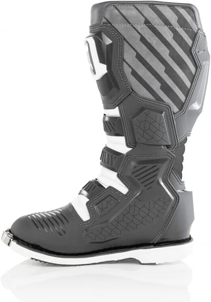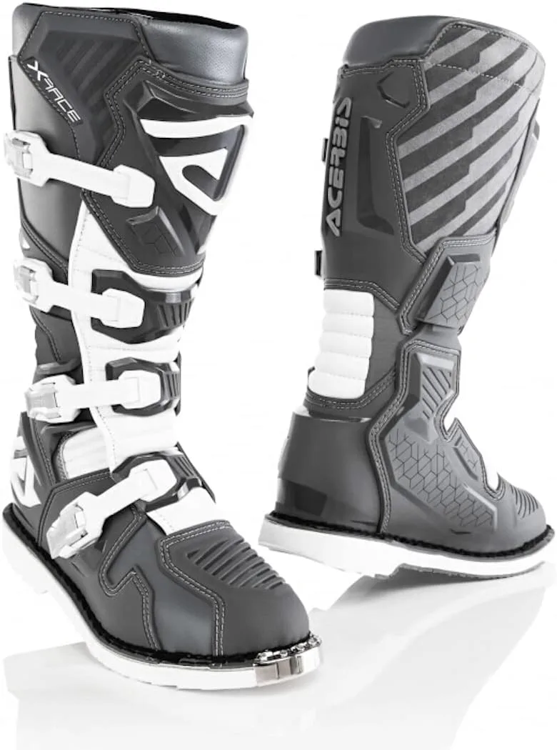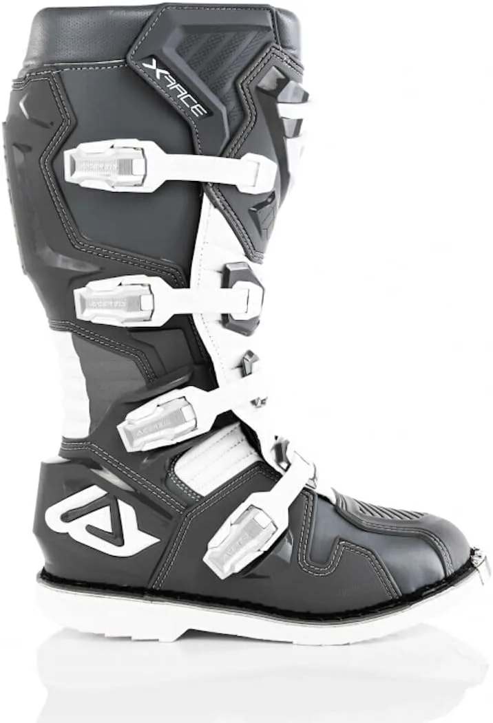 Мотокроссовые ботинки Acerbis X-Race. Компания Acerbis продолжает разрабатывать инновационные и защитные продукты с тем же энтузиазмом и страстью, которые были у основателей Acerbis в последние годы. Особенности конструкции: легкие, защитные и анатомические ботинки. Верх из износостойкой кожи и микрофибры. Молния в области лодыжки между защитой плюсневой кости и манжетой голени, обеспечивающая гибкость вращения стопы и контроль над движением ноги. Анатомически сформированная и усиленная защита голени. Формованная защита пятки для ускорения переключения передач при старте. Защита стопы и расширенный капюшон пальцев ног внутри и снаружи из пластика с ребрами для лучшего поглощения ударов. Застежка на 4 больших алюминиевых рычага. Эксклюзивная подошва Acerbis: ударопрочная, маслостойкая, бензиностойкая и износостойкая. Широкая поверхность подошвы для лучшего сцепления с подножками. Амортизирующая предварительно сформированная стелька. Внутренний материал из 3D-сетки для превосходного комфорта и вентиляции. Пенопластовая подкладка вокруг лодыжек. Примечания: EN 13634: 2017