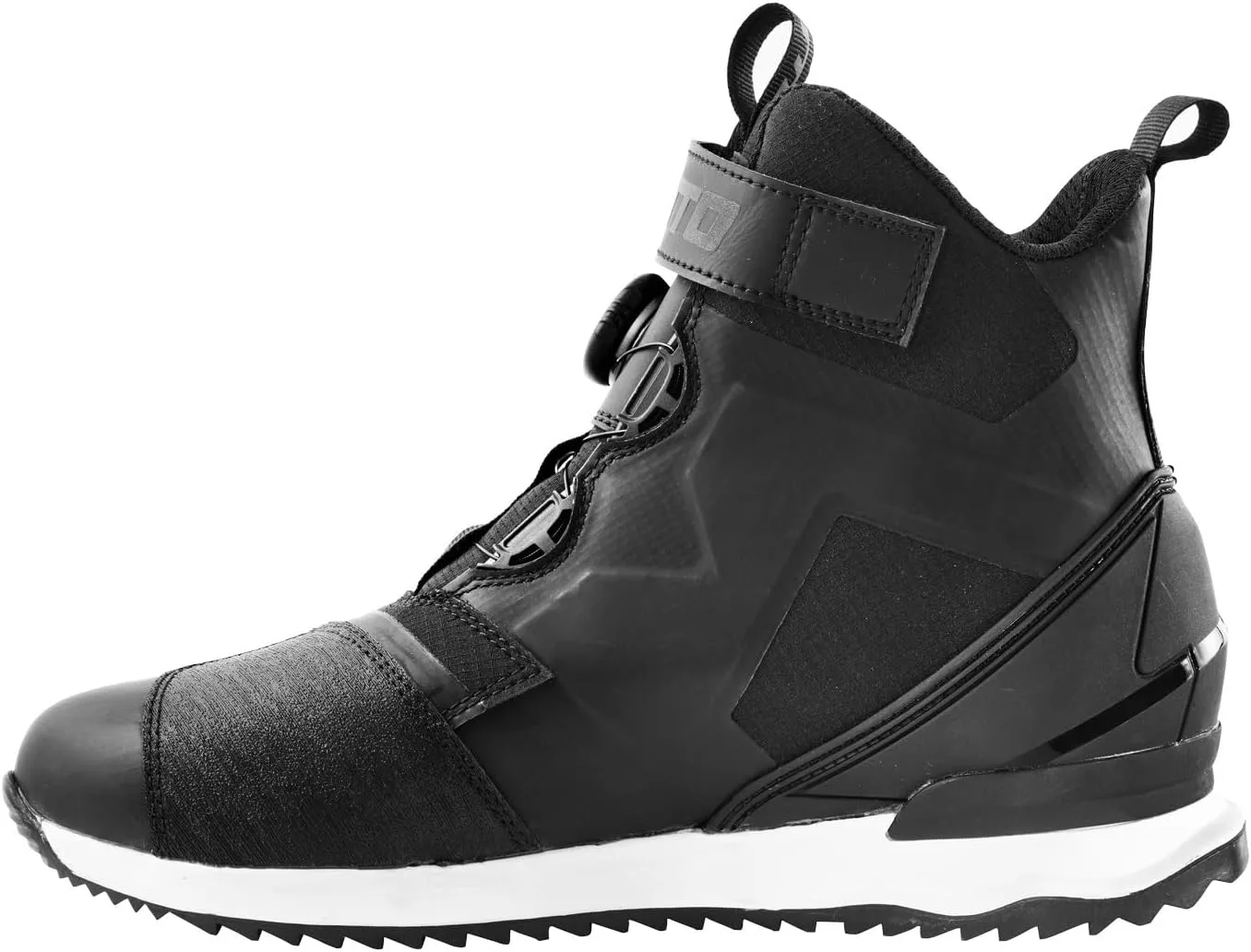 Мотоциклетные ботинки Bogotto Quickshift. Мотоциклетные ботинки Bogotto Quickshift сочетают в себе защиту, комфорт и современный дизайн для ваших поездок. Благодаря невысокому голенище и удобному приспособлению для надевания, они обеспечивают комфортную посадку и легко надеваются и снимаются. Светоотражающие элементы обеспечивают дополнительную видимость, а застежка на липучке и инновационная система застежки Atop спереди гарантируют надежную фиксацию. Профилированная подошва обеспечивает оптимальное сцепление, а надпись Bogotto на застежке-липучке, по бокам и сзади завершает спортивный образ. Изготовленные из термопластичного полиуретана (ТПУ) и кожи, ботинки впечатляют своей прочностью. Усиления на лодыжке, носке и пятке, а также усиление рычага переключения передач делают эти ботинки идеальным выбором для взыскательных мотоциклистов. Особенности: невысокое голенище с приспособлением для надевания, удобная посадка, светоотражающие элементы, застежка на липучке спереди с системой Atop, профилированная подошва, надпись Bogotto на застежке-липучке, по бокам и сзади. Материал верха: термопластичный полиуретан (ТПУ), кожа. Технические характеристики: защитная обувь для мотоциклистов (EN 13634:2017), усиление уровня 1|2|2|2 на лодыжке, в области пальцев и пяток.