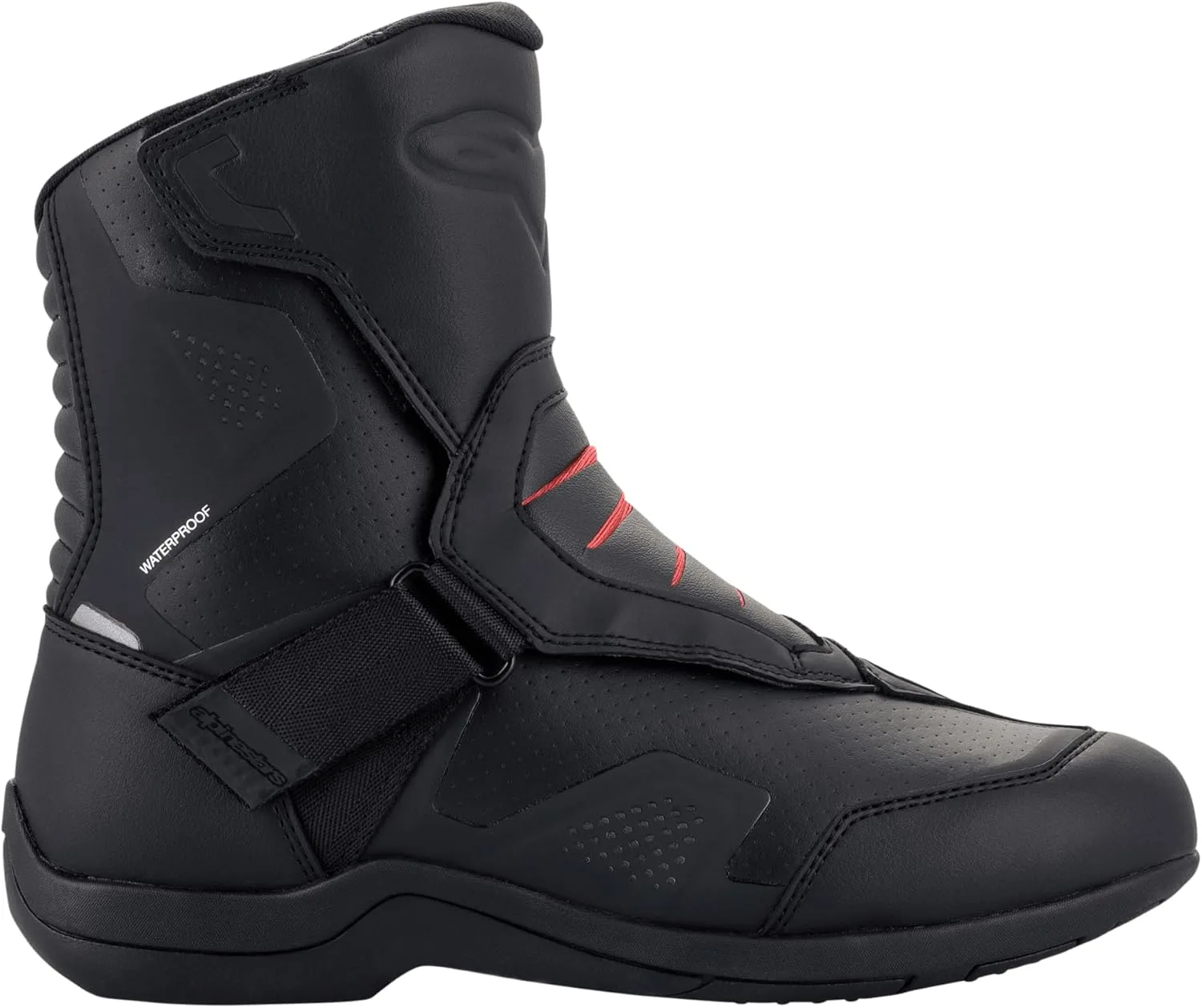 Мотоциклетные водонепроницаемые ботинки Alpinestars Ridge V2, черные. Ridge V2 Waterproof — это легкие технические ботинки, изготовленные из прочного и износостойкого микроволокна с водонепроницаемой мембраной для оптимального комфорта, производительности и защиты. Детали: Верх выполнен из прочной синтетической ткани для повышения износостойкости, сварные соединения в области бедер и пальцев для увеличения срока службы. Водонепроницаемая мембрана между верхом и подкладкой обеспечивает проверенную производительность в суровых погодных условиях. Форма ботинка гарантирует длительный комфорт. Эргономичная конструкция носка для улучшения ощущения во время езды. Эластичные гетры спереди и сзади обеспечивают гибкость, сохраняя при этом структурную жесткость. Система застежки: Застежка на липучке сбоку на лодыжке и липучка на верхней части для лучшей посадки и оптимизированной регулировки. Термоклеевое усиление пластины для снижения веса и защиты от ударов. Двухслойные защитные элементы на лодыжке в средней и боковых частях усилены пенополиуретановой подкладкой для защиты и комфорта. Подошва адаптируется к форме стопы и имеет текстурированное усиление верха. Съемная анатомическая стелька изготовлена из пеноматериала EVA и ткани для дополнительного комфорта. Мягкая подкладка обхватывает лодыжку, обеспечивая надежную фиксацию и комфорт. Светоотражающие элементы расположены по бокам и сзади. Эксклюзивная подошва Alpinestars изготовлена из вулканизированной резиновой смеси с боковой обхватывающей конструкцией, способной выдерживать нагрузки на дороге.