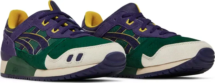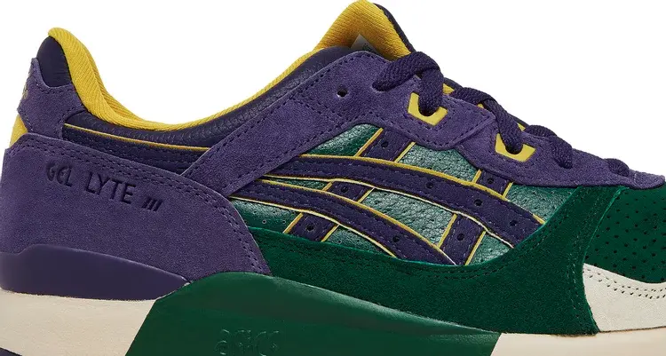 Пакет ASICS Gel Lyte 3 «Academic Scholar Pack» украшает ретро-бегуна цветовой палитрой, вдохновленной университетской средой. Мягкая замша покрывает большую часть верха в контрастных темно-зеленых и фиолетовых оттенках. Соответствующие фиолетовые боковые полосы обведены желтым контуром, а яркий оттенок снова появляется на плюшевой ткани, которая окаймляет воротник и фирменный раздвоенный язычок. Кроссовки установлены на двухцветной промежуточной подошве из ЭВА с амортизирующим гелем в области пятки. Прочная фиолетовая резиновая подошва под ногами обеспечивает надежное сцепление.