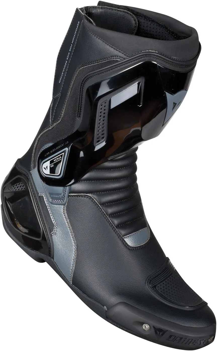 Ботинки Dainese Nexus Lady из термопластичного полиуретана с амортизирующей нейлоновой вставкой и декоративными элементами, обеспечивающими контроль деформации. Верх из микрофибры с застежкой-молнией. Эргономичная задняя регулировка голенища благодаря липучкам спереди и сзади для более легкой регулировки температуры. Повседневная обувь с двойной текстурой. Особенности: шестигранный ключ, сменный ползунок из нержавеющей стали, комплект сменных ботинок, изготовленных из термопластичного полиуретана с резиновой накладкой. Сертификат CE - Cat. II - EN 13634/2010.