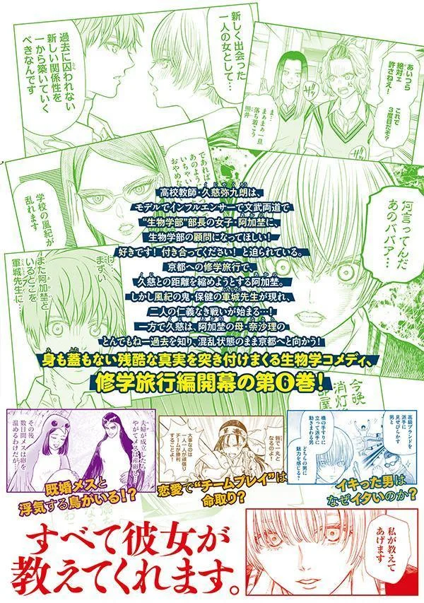 Учителя Кудзи Якуро бросает девушка, потому что он «недостаточно мужественный». Разве мир не должен быть свободен от гендерных различий...!? Пока он мучается из-за этого, перед ним появляется Акано, модель, инфлюенсер, преуспевающая как в учебе, так и в спорте, и президент «Биологического клуба», и просит его стать советником Биологического клуба.