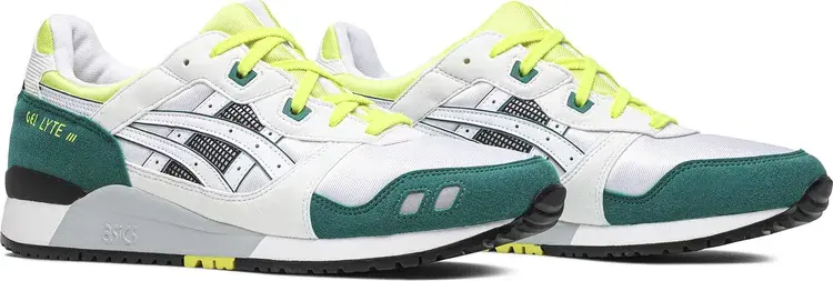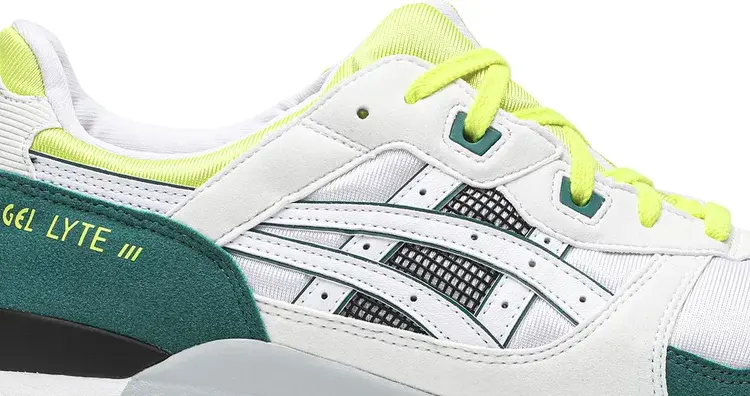 Кроссовки ASICS Gel Lyte 3 OG отмечают свое 30-летие в одной из своих оригинальных расцветок 1989 года. Это издание, представленное в ноябре 2019 года, возвращает классический вид из белой сетки с цитрусовыми шнурками, акцентами из зеленого нубука и характерным раздвоенным язычком. Фирменный полосатый логотип перекрывает контрастную сетку, а на пятке выгравировано название кроссовок. Двухцветная межподошва с амортизирующим гелем и резиновая подошва завершают возрождение.
