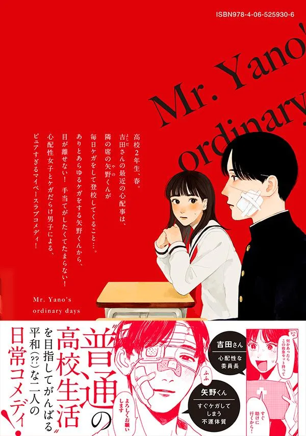 Ёсида — староста класса, которая немного более тревожна, чем большинство. В последнее время её больше всего беспокоит то, что Яно, который теперь учится с ней в одном классе, каждый день приходит в школу с серьёзной травмой. Она не может оторвать глаз от Яно, который получает травмы самыми разными способами! Она отчаянно хочет залечить его раны! Повседневная комедия о любви между склонным к травмам парнем и тревожной девушкой!