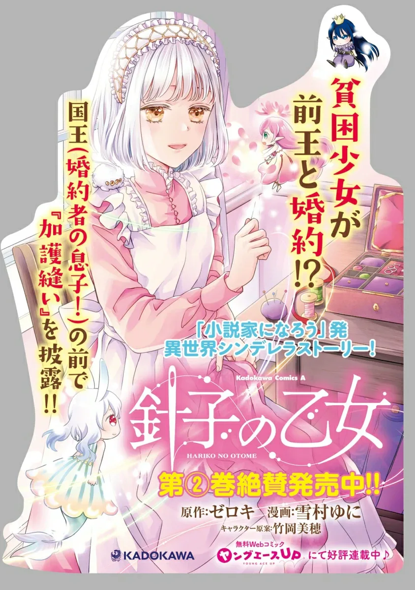 Чтобы объявить о своей помолвке с бывшим королем Арджитом, Юи впервые после прибытия в этот мир посещает вечеринку. Там она встречает Харнию, дворянку, которая расстроена из-за того, что ее платье испачкано, и в итоге наносит ей мощный «защитный шов» прямо на месте проведения вечеринки.