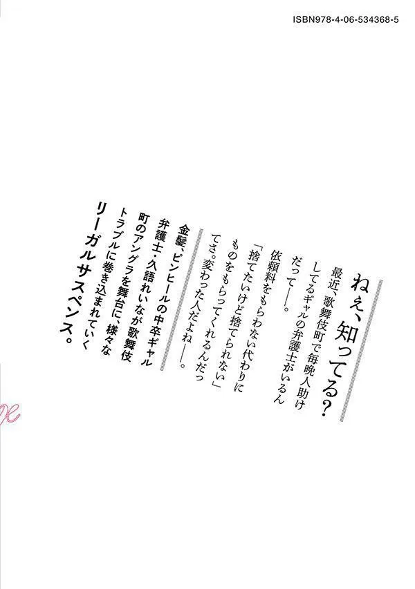 В Кабукичо живет адвокат, который подхватывает безмолвные голоса уязвимых людей, подвергающихся эксплуатации и угнетению в этом городе, и использует свои юридические знания, чтобы спасти их. Более того, за эту услугу плата не взимается; вместо платы требуется лишь «сувенир, который вам невыносимо выбросить»... Это юридический триллер, в котором Рейна Хисаго, блондинка на высоких каблуках, бросившая школу, адвокат, ведет активную деятельность в подпольном мире Кабукичо.
