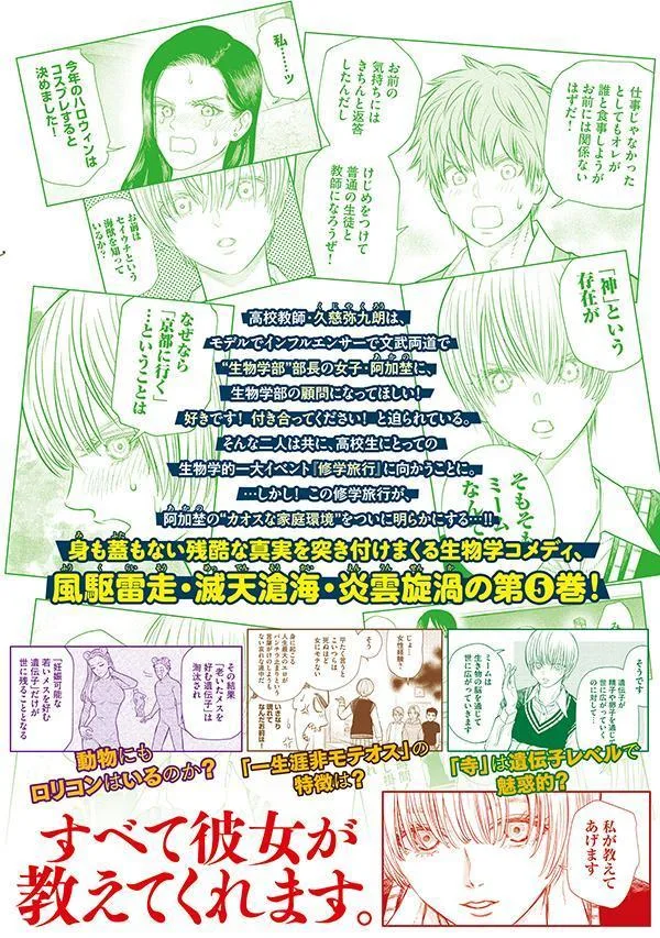 Учителя Кудзи Якуро бросает девушка, потому что он «недостаточно мужественный». Разве мир не должен быть гендерно-нейтральным...!? Пока он мучается из-за этого, перед ним появляется Акано, модель, инфлюенсер, одаренная в учебе и спорте, президент «Биологического клуба», и просит его стать советником клуба.