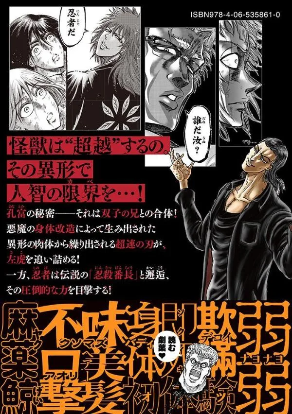 Секрет Кунг-фу раскрыт: он слился со своим братом-близнецом! Сверхбыстрые клинки, вырывающиеся из его чудовищного тела, созданного с помощью демонической модификации тела, загоняют Левого Тигра в угол! Тем временем ниндзя сталкивается с легендарным «Боссом-убийцей ниндзя» и становится свидетелем его ошеломляющей силы! Потрясающий 13-й том современной истории о ниндзя, ставший вирусным в социальных сетях!