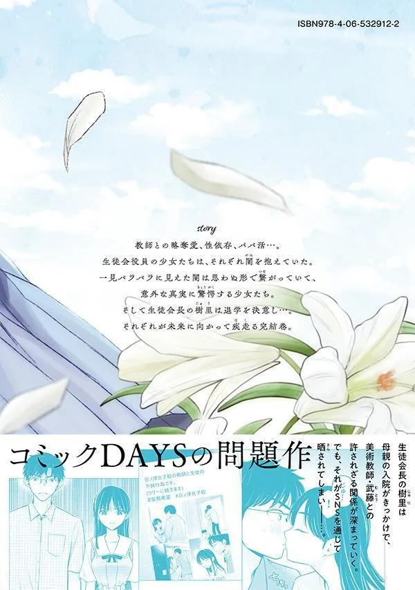 Джури, Макото, Мицуги и Канон, четыре участницы студенческого совета престижной женской средней школы, — школьные красавицы, которыми все восхищаются за их красоту и совершенство. Подобно лилии Мадонны, белой лилии, посвященной Деве Марии, они являются символами чистоты школы. Однако у каждой из них есть скрытая сторона. Что станет с запретной любовью между Джури и Муто? Происходят инциденты с Макото, которая занята «сахарскими свиданиями», Мицуги, которая стремится вернуться в индустрию развлечений, и Канон тоже… Заключительный том истории девушек, стремящихся жить в современном мире!