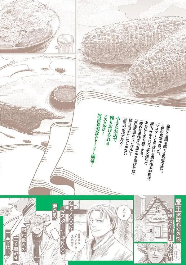 В отдаленном районе, отделяющем мир демонов от королевства, находилась единственная закусочная. Блюда, приготовленные человеком, известным как «Мастер», покоряли сердца самых разных посетителей, от повелителей демонов и суккубов до принцесс. «Ночные жареные яйца», «соба темпура из горных овощей», «рис с яйцом ангела»… целая череда изысканных блюд, которые можно найти только здесь!