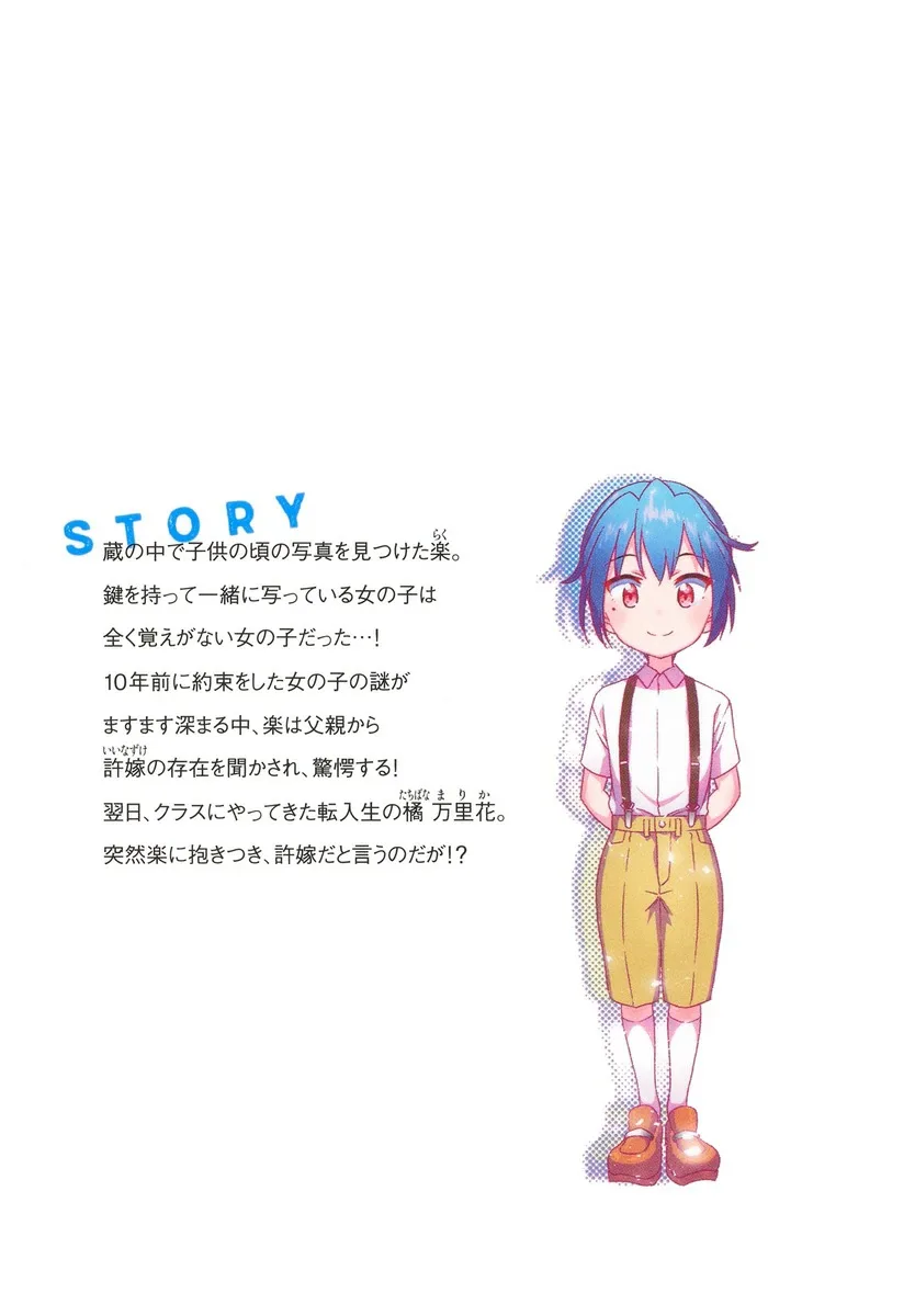 Раку находит в кладовой детскую фотографию. Девочка на фотографии, держащая ключ, — это девочка, которую он совсем не помнит...! По мере того, как раскрывается тайна девушки, с которой он дал обещание 10 лет назад, Раку с ужасом узнает от отца о существовании своей невесты! На следующий день в его класс приходит новенькая ученица, Тачибана Марика. Она внезапно обнимает Раку и заявляет, что она его невеста!?