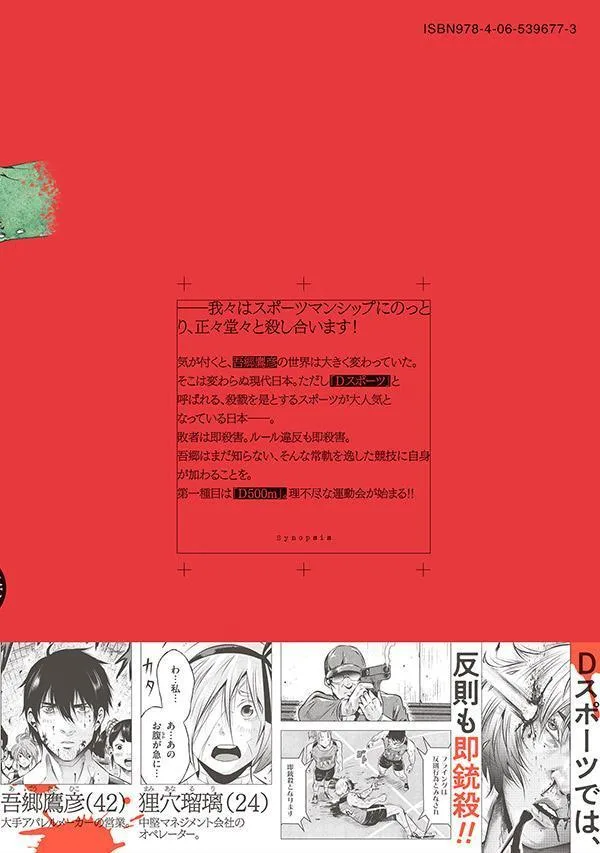 Прежде чем он успел опомниться, мир 42-летнего офисного работника Такахико Аго кардинально изменился. Это была все еще современная Япония, но на этот раз невероятно популярным стал вид спорта под названием "D-спорт", который оправдывает убийства. Проигравших убивают на месте. Нарушителей правил также убивают на месте. Аго еще не знает, что ему предстоит участвовать в таком безумном соревновании. Первое событие — "Забег на 500 метров D". Абсурдный спортивный день вот-вот начнется!