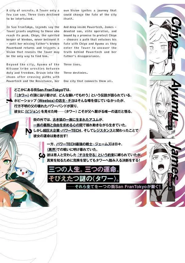 В городе Сан-Франциско, Токио, где-то в мире, существует легенда о том, что «если ты достигнешь вершины Башни, любое желание исполнится». Чиё, владелица магазина товаров для хобби Weebox, не верила этому слуху, но когда сломанный браслет ее пропавшего отца вернулся и показал ей видение, она поняла, что Башня — единственный способ добраться до отца. За пределами города Аюму, родившаяся в древнем клане лис, жила, разрываясь между долгом своего клана и желанием свободы. Однако ее судьба начинает меняться, когда она оказывается вовлечена в дела колоссальной корпорации PowerTECH и сопротивления!