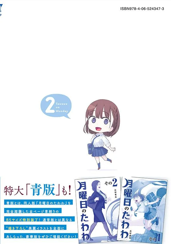 Мир Тававы развеет вашу понедельничную хандру. Шедевр Химуры Кисеки, вызвавший сенсацию в Твиттере и среди додзинси, впервые превращается в коммерческую мангу с новыми эпизодами!! Мы представляем вам второй том манги «Понедельничная Тавава» из журнала Young Magazine!