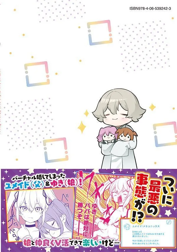 Папа тайно работает в качестве милого виртуального ютубера Юмайда, не ставя в известность свою дочь Юки. Но затем он вступает в виртуальный брак с Юки, которая без памяти влюблена в Юмайда!? Дома она холодна и отстраненна, но в виртуальном мире осыпает его сильной любовью, из-за чего папа чувствует себя плохо... *плачет*. Однако виртуальная деятельность этого папы и Юмайда подходит к концу из-за неожиданного инцидента...!? Забавная комедия о семье виртуальных ютуберов подходит к своему финалу!!