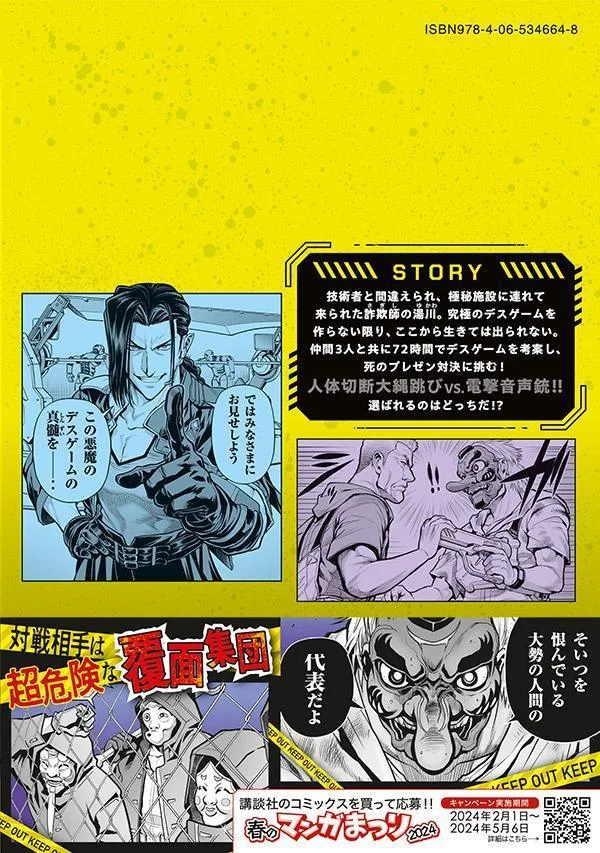 Юкава, мошенник, по ошибке принимается за инженера и попадает на сверхсекретный объект. Он не выберется оттуда живым, пока не придумает смертельную игру. Вместе с тремя товарищами у него есть 72 часа, чтобы придумать смертельную игру и сразиться в смертельной битве! Прыжки через скакалку, разрезающие человеческие тела, против электрического звукового пистолета!! Что выберете!?