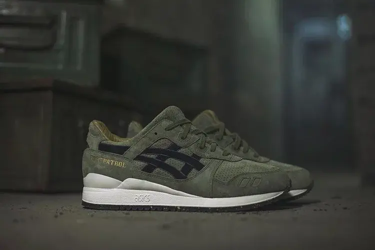 Лондонский ритейлер Footpatrol, выпущенный ограниченным тиражом всего в 1990 пар, сотрудничал с Asics в создании этого «Squad» Gel Lyte 3, чтобы отметить 25-летие силуэта Gel Lyte 3. Черпая вдохновение в культовом логотипе противогаза Footpatrol, беговые кроссовки сочетают в себе землистые армейские оттенки на верхе из нубука, перфорированные детали, шениль на воротнике и раздвоенный язычок. Средние средние панели украшены полосами Olive Tiger Stripes с золотыми вставками, а боковые полосы Tiger Stripes выполнены в черном цвете. Фирменный знак Gold Foot Patrol подчеркивает боковую лодыжку и пятку с биркой «FP SQUAD» на внутренней стороне разделенного язычка.