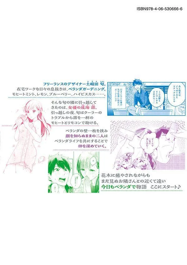 Независимый дизайнер-редактор Джун Токита проводит дни, запершись в своей комнате, постоянно занятый работой. В поисках уединения он погружается в садоводство на балконе. Однажды по соседству поселяется немного эксцентричная, чудаковатая женщина. Благодаря случайной встрече они начинают разговаривать через балконную перегородку, никогда раньше не встречавшись. Соседкой оказывается восходящая звезда актерского искусства Ю Наруми... Что же станет с этими двумя, разделенными лишь балконом и зеленью?
