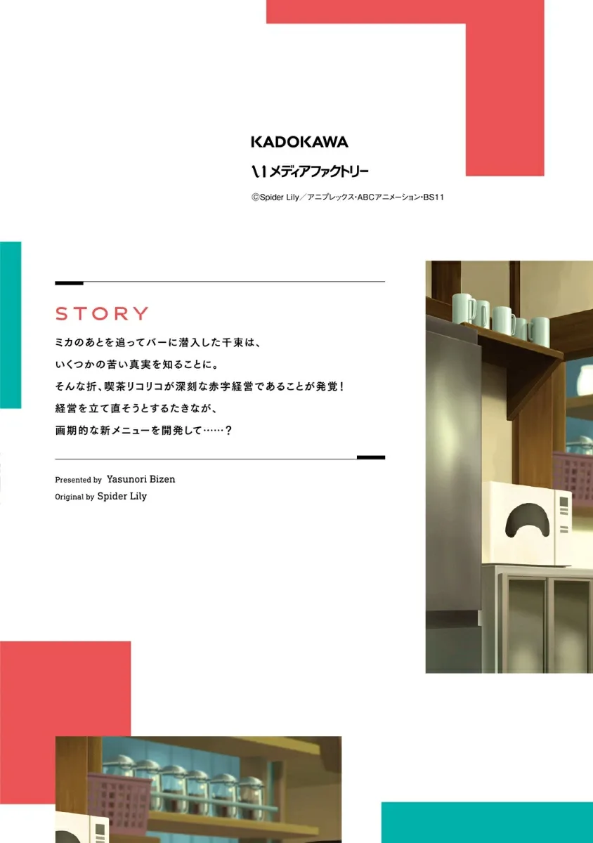 Следуя за Микой, Чизуру проникает в бар и узнает несколько горьких истин. В то же время выясняется, что кафе «Рикорико» работает с серьезными убытками! Такинага пытается изменить ситуацию, разработав новаторское блюдо для меню...?