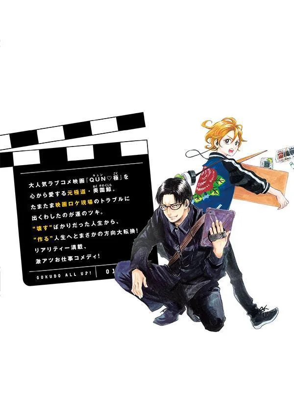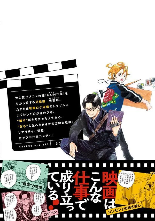 Кинорежиссер Норихиро Коидзуми, снявший такие фильмы, как «Тихаяфуру» и «Сэн ва, Боку во Эгаку», и сценаристы «Monogatari Lab» изображают «закулисье» киноиндустрии, основываясь на своем личном опыте! Манга проиллюстрирована Норико Отани, чья известная работа «Сукутте Горан» была экранизирована. Сценаристы, тесно связанные с киноиндустрией, изображают захватывающую драму закулисной работы, которая является важной частью фильма, с точки зрения Кудзиры Окудзоно, бывшего якудзы, который всем сердцем любит романтическую комедию «QUN・Goku». Кудзира неожиданно оказывается вовлеченным в съемки фильма. Внезапно ему достается определенная роль. Обычно для него это было бы легко, но на съемочной площадке он ужасно нервничает. Однако съемки фильма — это командная работа. Сможет ли Кудзира, вынужденный рисковать своей жизнью ради своей банды, хорошо справиться со своей работой? Это комедия о работе, которая заставит вас захотеть посмотреть фильм и отправиться в кинотеатр. Том 1!