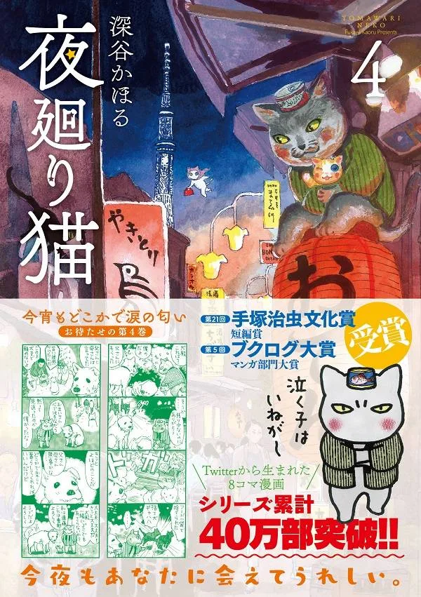 "Есть ли плачущие дети? Есть ли плачущие дети?" Эндо Хейдзо, ночной патрульный кот, идет по запаху слез. Он будет рядом с вами, теми, кто живет полной жизнью и кто страдает и плачет из-за ваших отчаянных усилий. Эта манга из 8 панелей, появившаяся в Твиттере, получила премию за лучший короткий рассказ на 21-й церемонии вручения Культурной премии Тэдзуки Осаму. Это популярное произведение, показанное в программах NHK «Ohayo Nippon» и «4-ji mo! Shibu 5-ji», Nippon Television «NEWS ZERO» и других, теперь доступно в долгожданном четвертом томе.