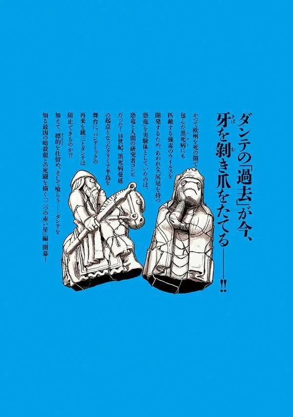 «Прошлое» Данте теперь обнажает свои клыки и когти! Исследовательский дуэт динозавра и человека использовал бедного «хвостатого динозавра» в качестве подопытного для разработки высокопатогенного вируса, сравнимого с Черной смертью (чумой), которая когда-то погрузила Европу во тьму смерти! Действие разворачивается на Крымском полуострове, отправной точке вспышки Черной смерти в XIV веке. Смогут ли Дзюдзо и Данте предотвратить возвращение пандемии!?